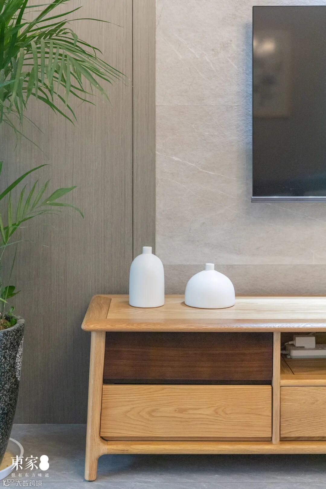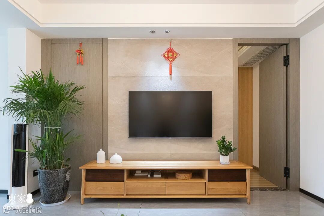 电视柜清新秀丽的色泽与清晰可见的纹理,每一处细节都彰显着木头的生命质感,这是时光成就的大自然之美。