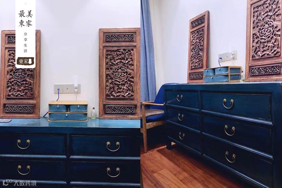 由于市场上大多中式都太过老旧和繁复,这个爱”美”时尚的女孩一开始选择的装修风格是美式。有幸的是小可偶然一次经过东家·花梨院子,一眼就被这种当代时尚新中式的风格所吸引。