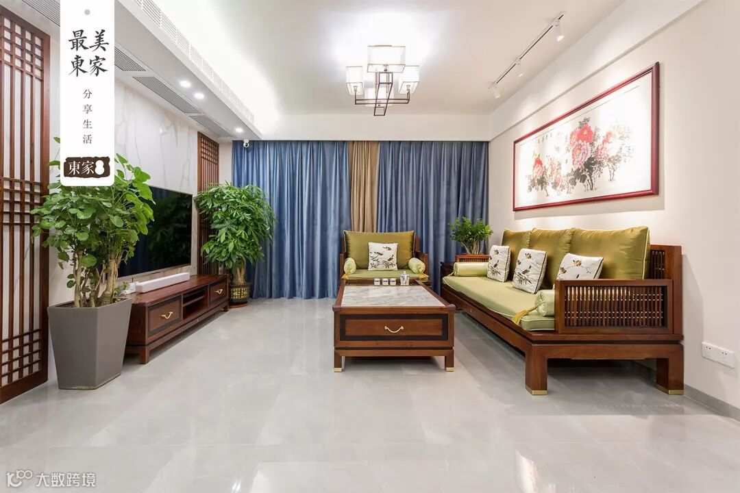 一款好看而舒适的沙发,是提升客厅颜值的利器。艳姐选用东家·花梨院子春晓沙发,造型设计删繁就简,靠背采用窗棂设计搭配草木绿的软包,让家具在美的同时增添一份色彩,一份雅致,温婉舒心。