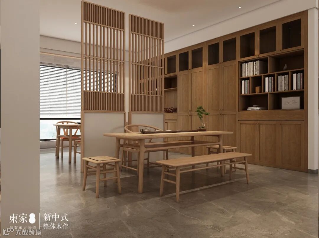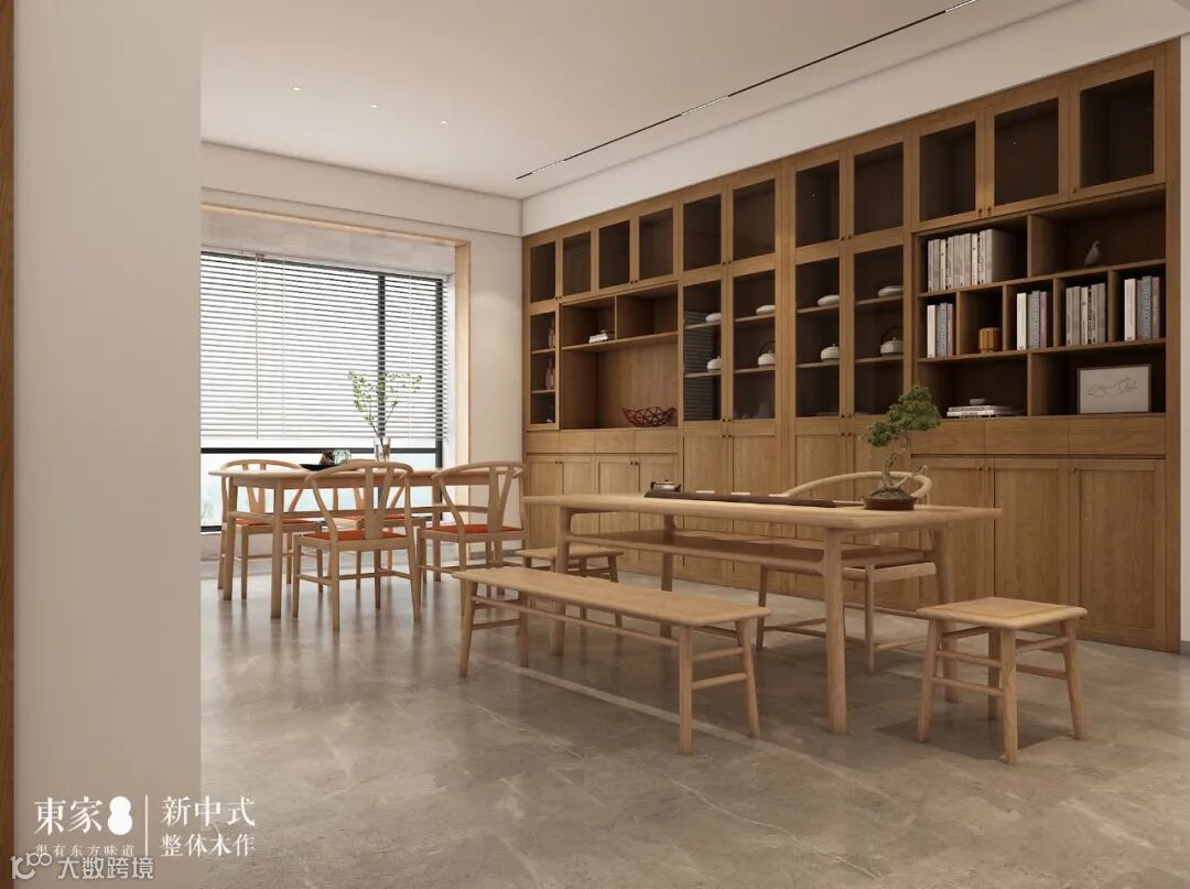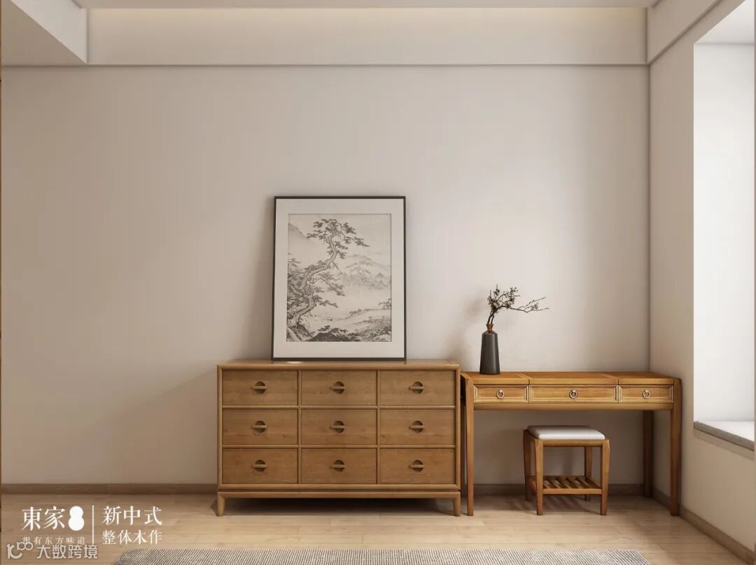 本案以原木色系贯穿整个空间设计,东家设计师把中国文人追求的精神,从容地挥洒于细节之中。无论是空间美、意境美、材质美都融汇贯通,触感自然细腻的木元素带来舒适的居家感觉。