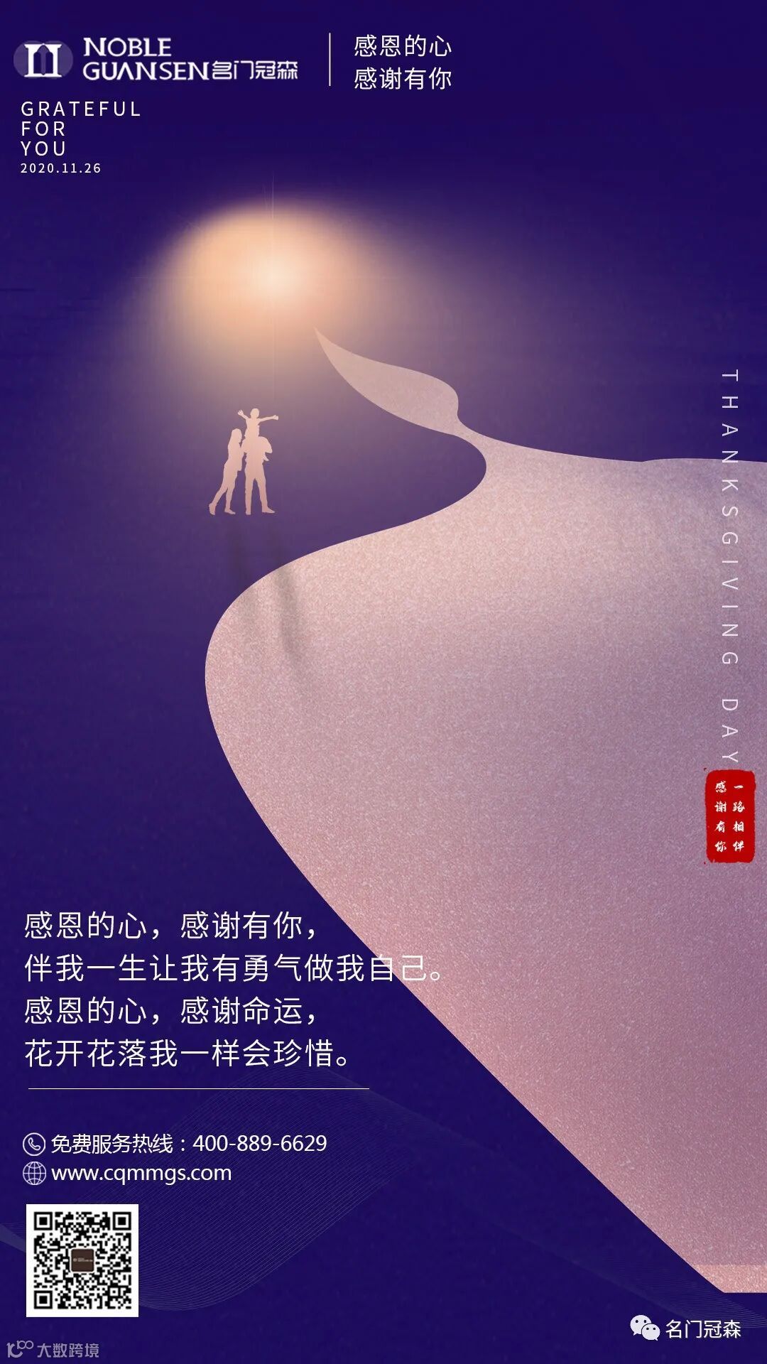 感恩节来临之际,身为名门冠森品牌木门的一员,我思绪万千,自豪无比,因为始终有一颗感恩的心,感恩社会,感恩父母,感恩重庆冉升智能家具有限公司,感恩广大代理商,感恩我们身边的每一个伙伴,因为他们给了我不忘初心的毅力和追求品质的力量。
