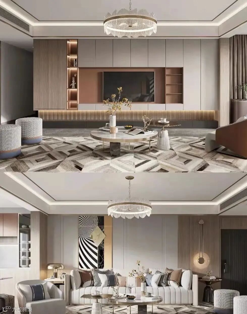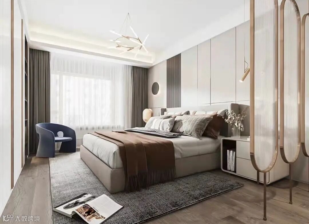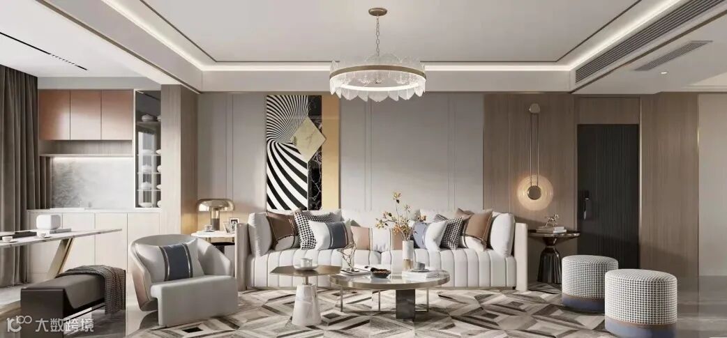 轻奢运用雅致的配色,深浅的搭配,再加以流畅的线条进行装饰。为空间增添层次感。