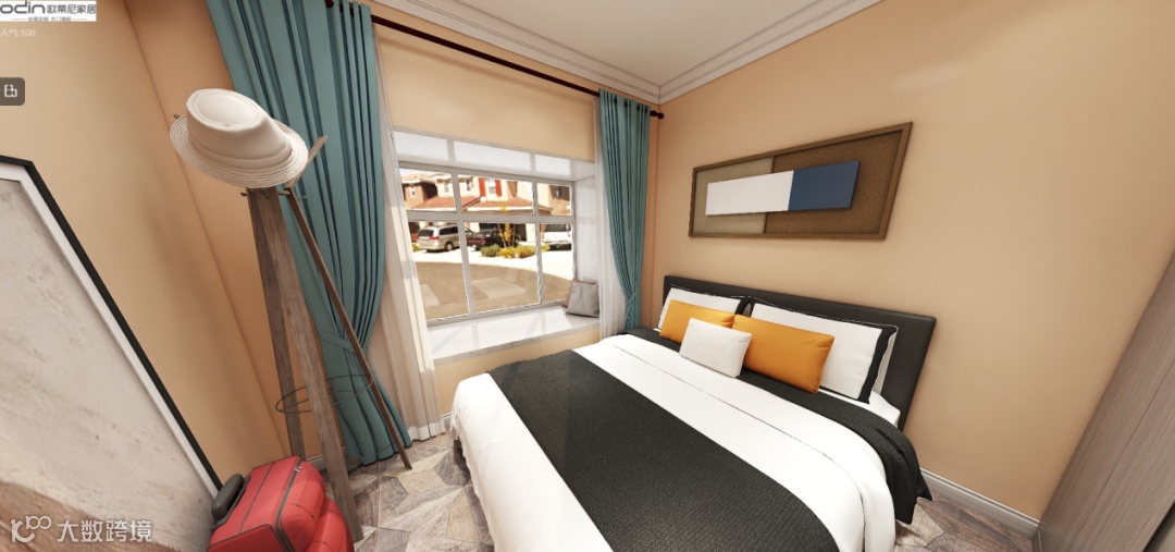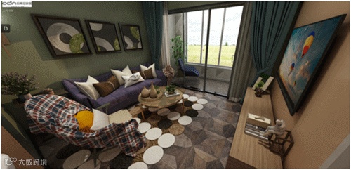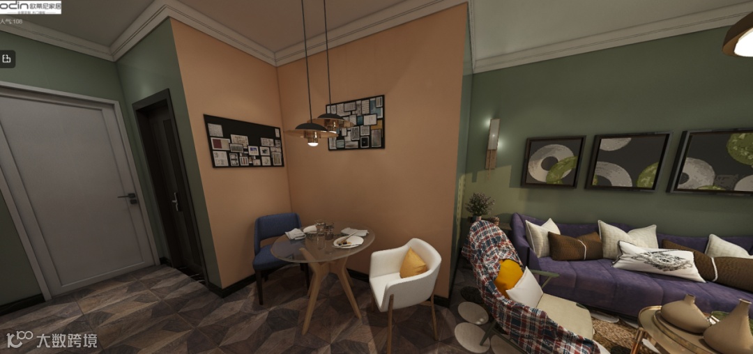 在以往的自然风情设计案例中,我们经常能看到白、绿为主色调的视觉搭配,家具布局呈现简约轻奢的总体风格,但在这款欧蒂尼的70㎡案例中,设计师大胆的别出心裁,运用贴近拉美风情的主视觉布置,搭配热带自然风格的元素搭配,营造出一种灵动感十足的多元化空间,塑造出美式自然和现代简约的完美契合点。