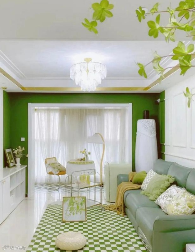 低饱和度的牛油果绿不像墨绿那么浓重,自然柔和又不失绿色的清新气息,在客厅或者卧室合理地应用绿色装饰,不仅有如临自然的清新感绿色,还会有舒缓眼睛,减少身心的疲累的功效。