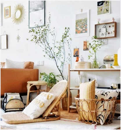 长盛不衰的清新配色和植物元素,向我们诉说生命的“奥义”。虽然我们无法体会四季如春的天气,但也可以用家居设计,色彩搭配,将春光迎进家,拥有一个生机盎然的美好空间。藤编自带欧式风格,具有年代感。