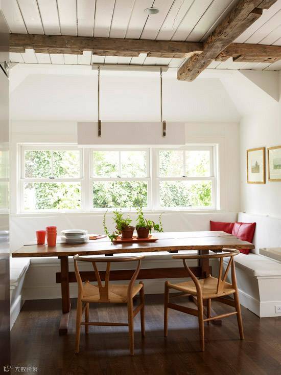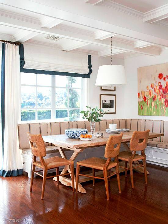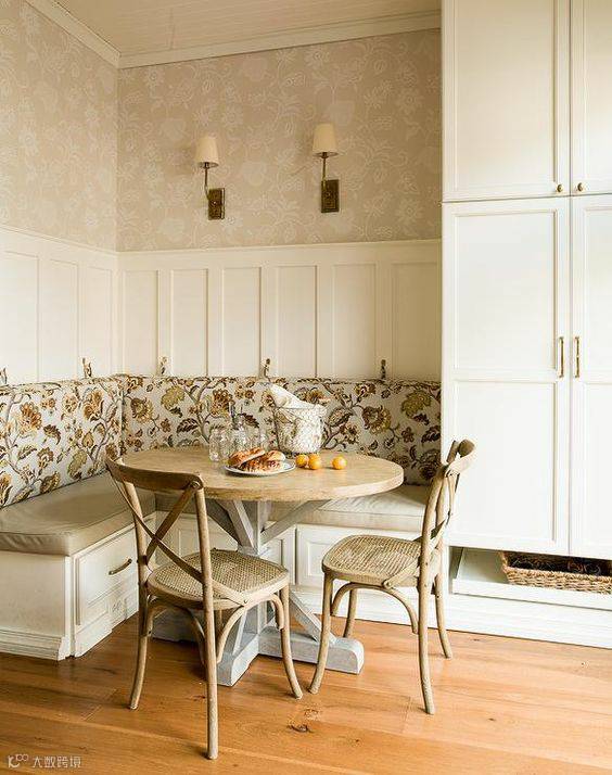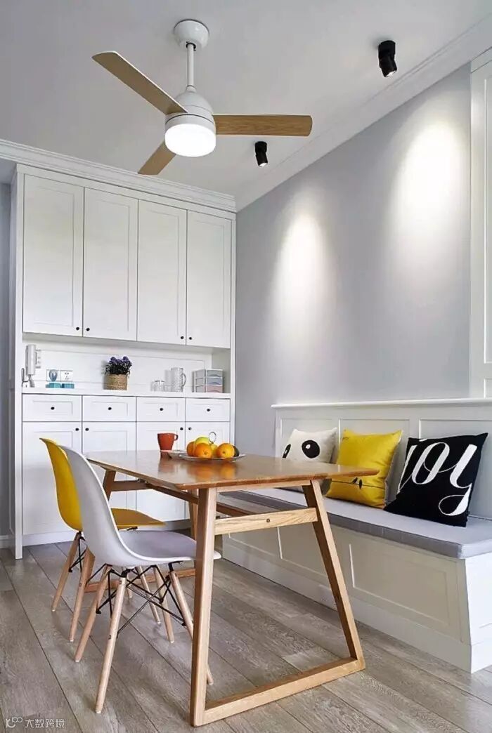 L形的卡座通常设置在拐角位置,在充分利用空间的同时,也增加了收纳空间,卡座既让空间布局更趋于合理,同时卡座区还为我们的家增添了用餐、休闲等功能。