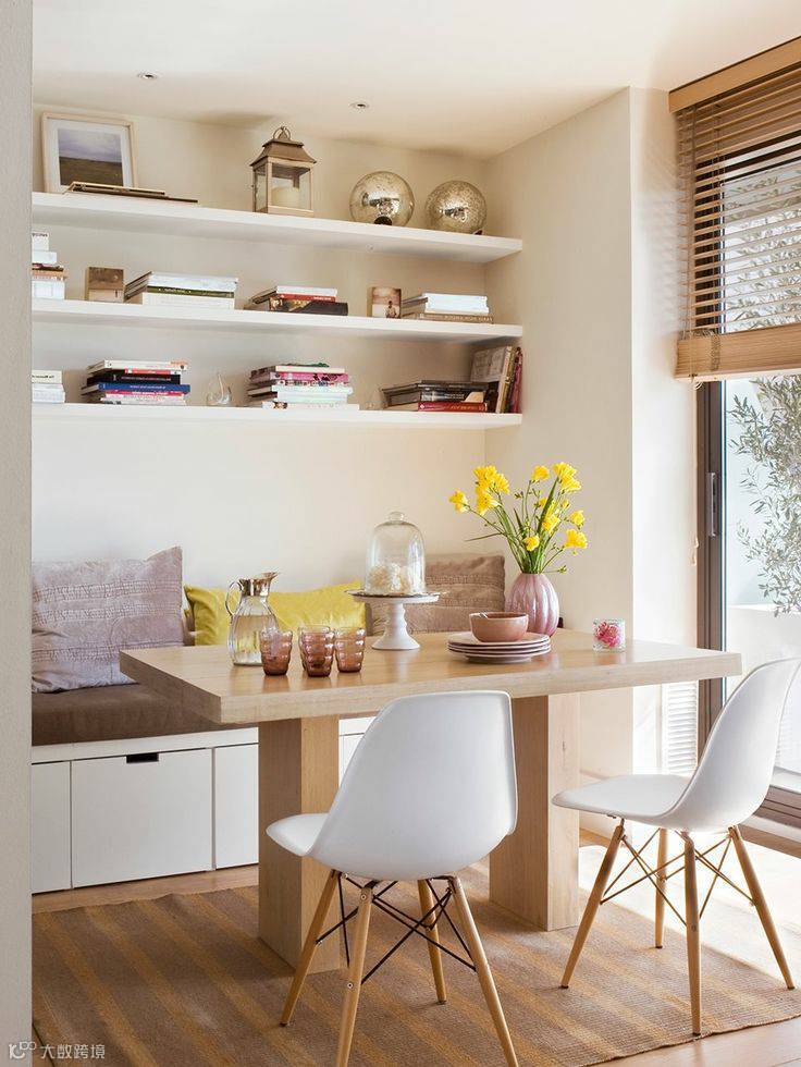无论大户型还是小户型,都可以选用具有强大收纳功能的双面卡座,双面卡座最好的位置是在窗边,一个明亮而又浪漫的空间就这样打造而成,你可以在此用餐,也可以在此阅读听歌,赏景。
