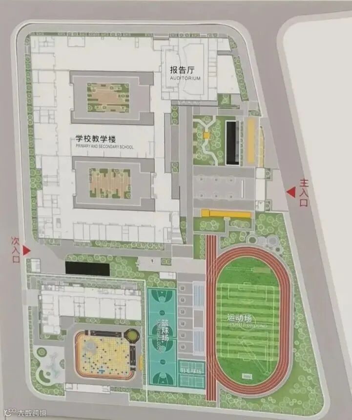 这是学校的平面图,左下角是双文幼儿园。