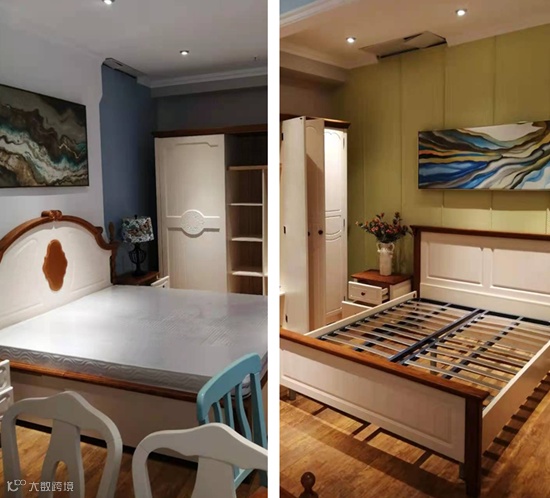 值得一提的是,这款套房中双人床的床架采用排骨架结构,不仅能保证透气性,还能对床垫起到缓冲的作用,在增加床垫寿命的同时还能给人们带来更好的睡眠体验。这款双人床的排骨架用钢架支撑,托起的排骨架有了更好的支撑力,不易折断。