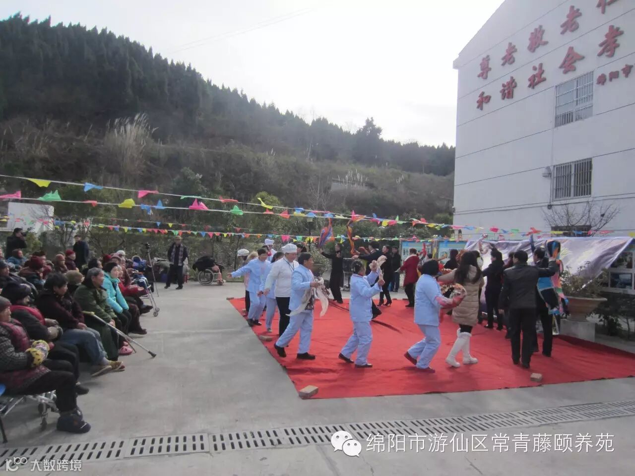 2016年1月23日,绵阳临西路社区美丽人生艺术团来我苑慰问演出,与长者联欢,一支支优美的舞蹈,一首首动人的歌曲,为寒冷的冬日增添了一份阳光,为老人送来了一份温暖。而我们的长者也不甘落后,争相上台表演节目,你方唱罢我登场,一曲曲脍炙人口的经典老歌,展现了颐养苑长者的风采,唱出了精彩的生活。多才多艺的护理员陈大哥更是化身伴奏达人,倾心为长者伴奏,优美的旋律赢得了大家的掌声。悠扬的歌声和热烈的掌声始终在颐养苑上空飘扬,长者们也度过了精彩、快乐的一天,再次感谢美丽人生艺术团的倾情奉献,谢谢大家!