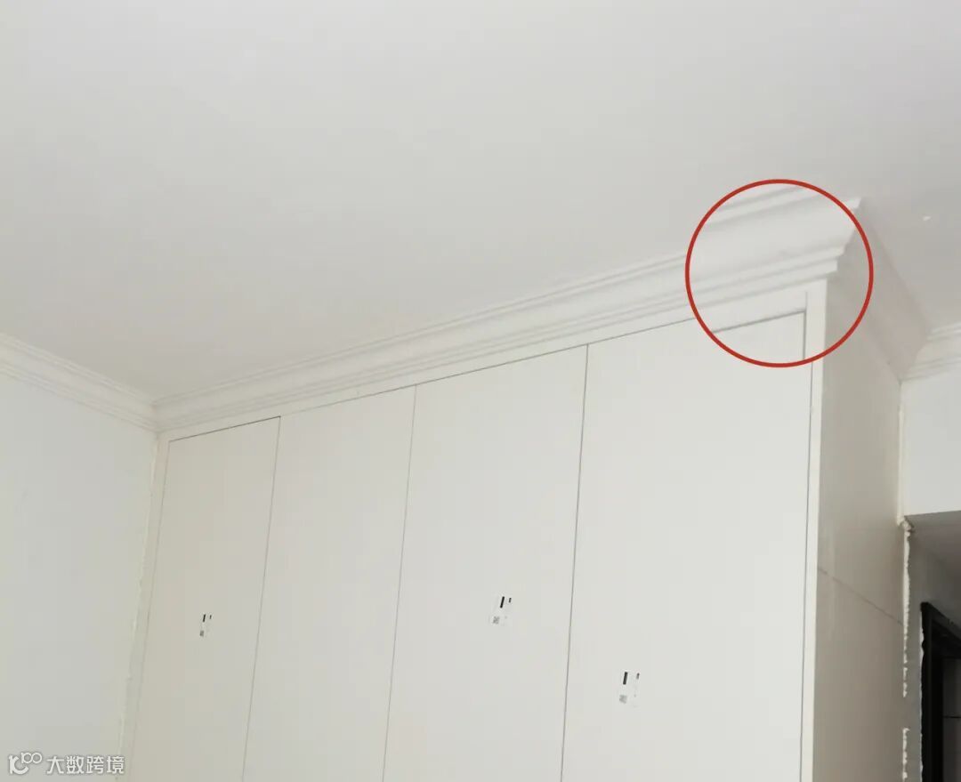 衣柜顶面用石膏板吊顶再装衣柜;如果实在不想做吊顶,亦可根据石膏线的位置留出顶封板的位置,装好衣柜再装石膏线/双眼皮。不然顶面的石膏线、双眼皮都能跟衣柜打架,最后必须牺牲一样。