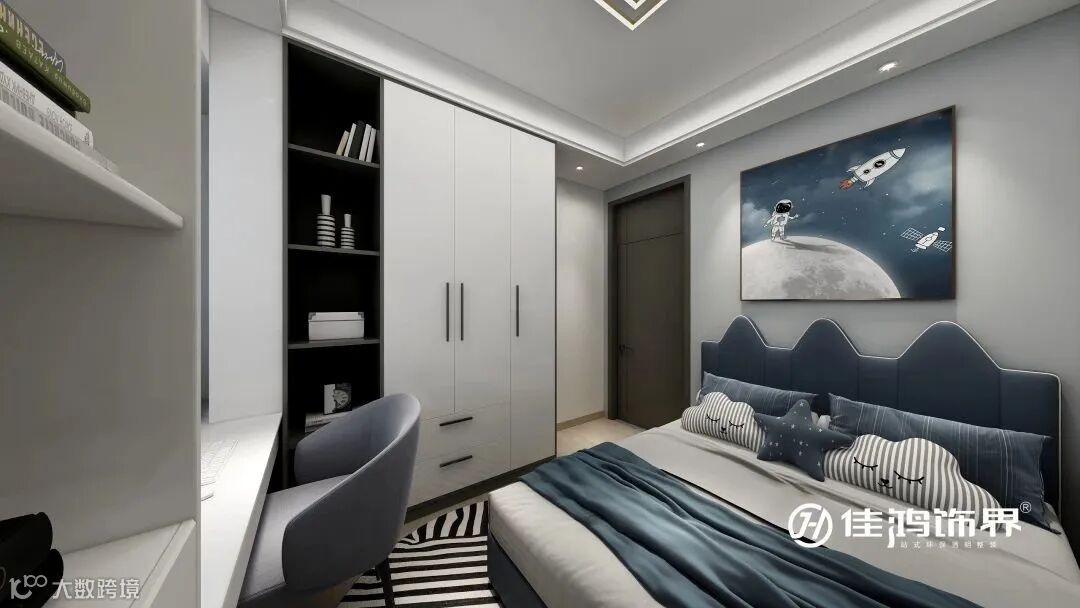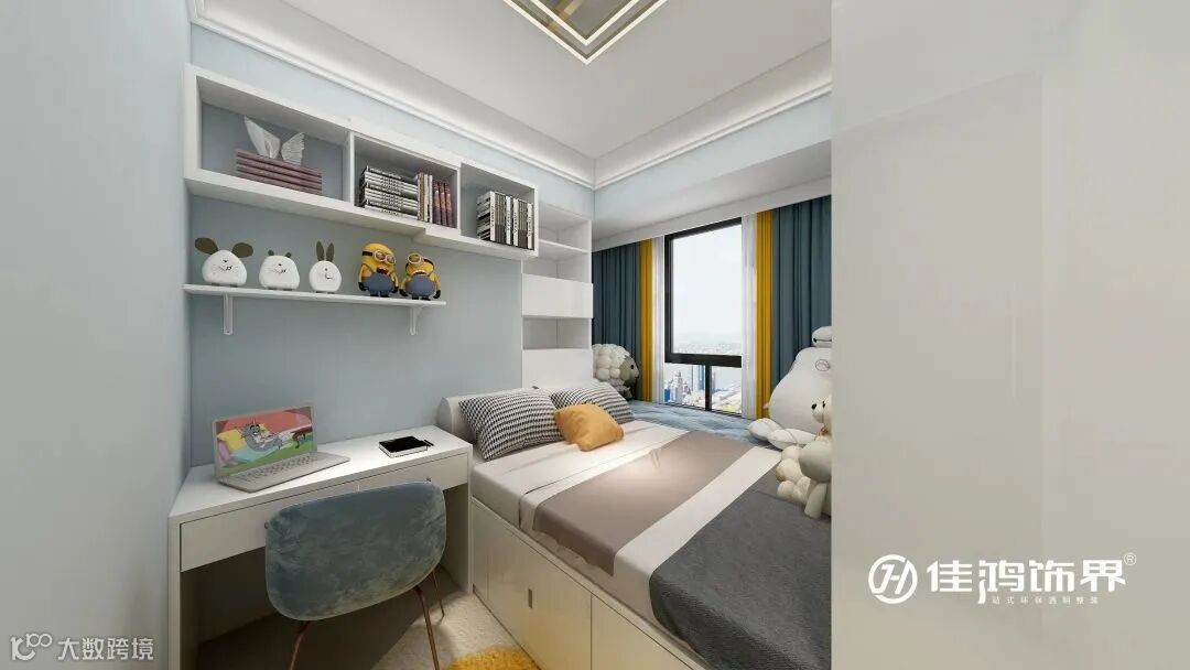 衣柜书桌别出一格的设计,半包围结构带来安全感,是小朋友自己的一方天地。