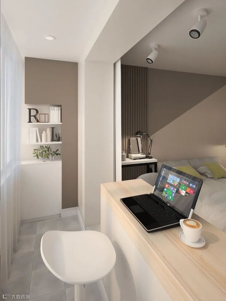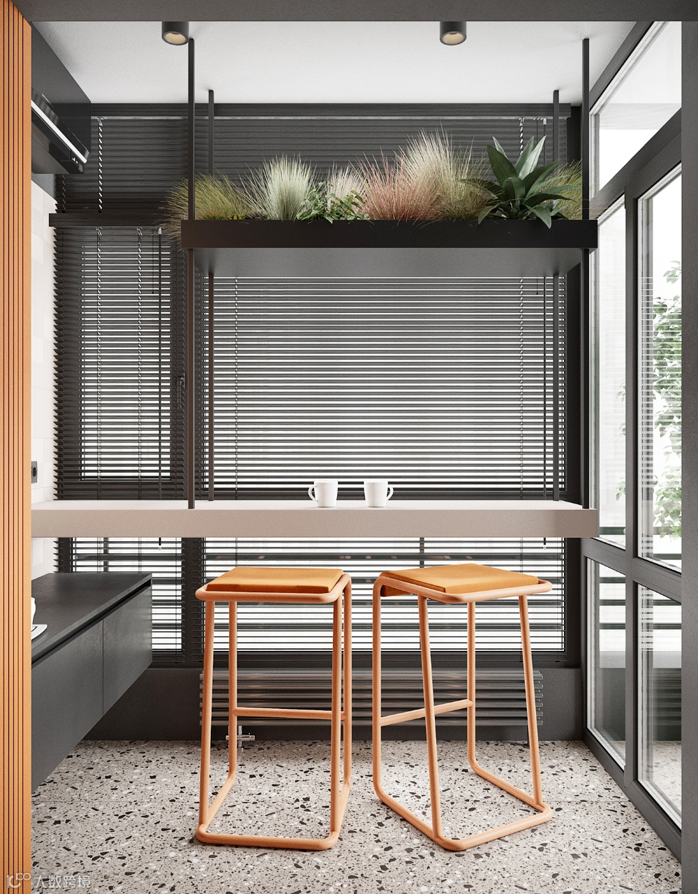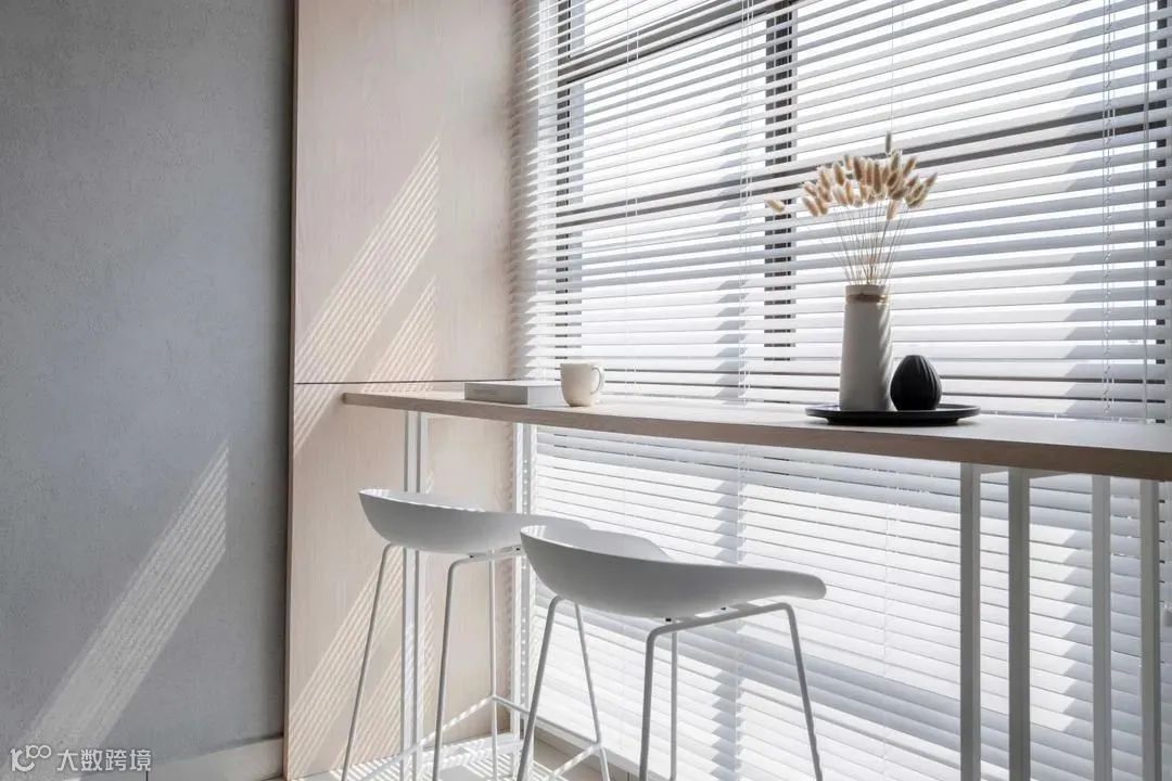 可以利用阳台自带的半墙,或在打阳台收纳柜时顺便做个小吧台。看看风景、喝喝咖啡,十分悠闲。