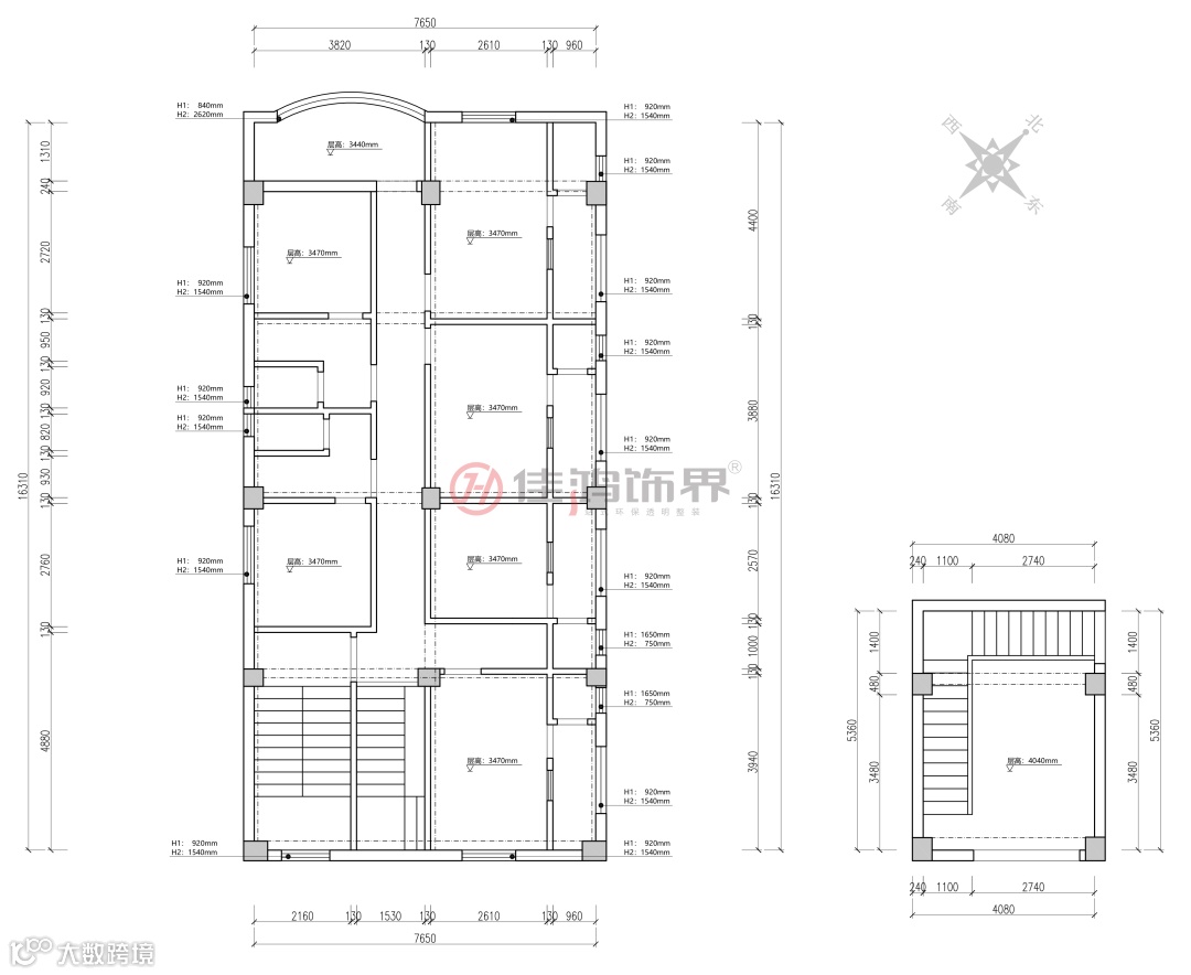 ❶室内梁位多且高,另外还有很多承重柱分隔空间结构;