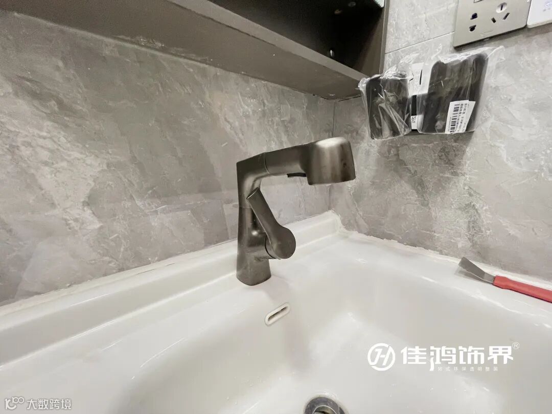 ❷为解决排水排污问题,我们对排污管的位置进行了专门的定位和固定,因为是靠外墙排污,施工过程中涉及到了部分高空作业;另外一个排水点在茶台区,原定计划打开楼板,但在打拆完地面后,发现靠墙边位置原建筑预留了排水口,这个排水点就得到了惊喜的解决;