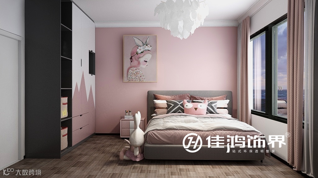 女孩房的装修设计上完全跳脱了公共区域格调,以女儿的审美需求进行装修设计。
