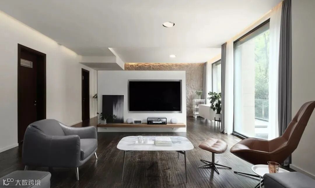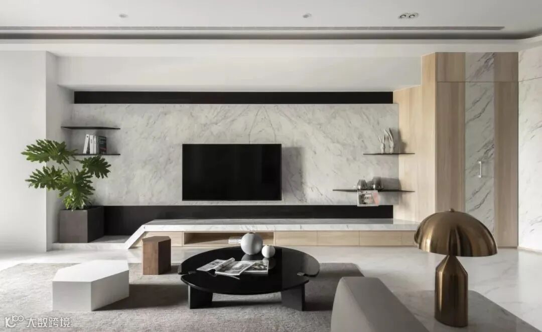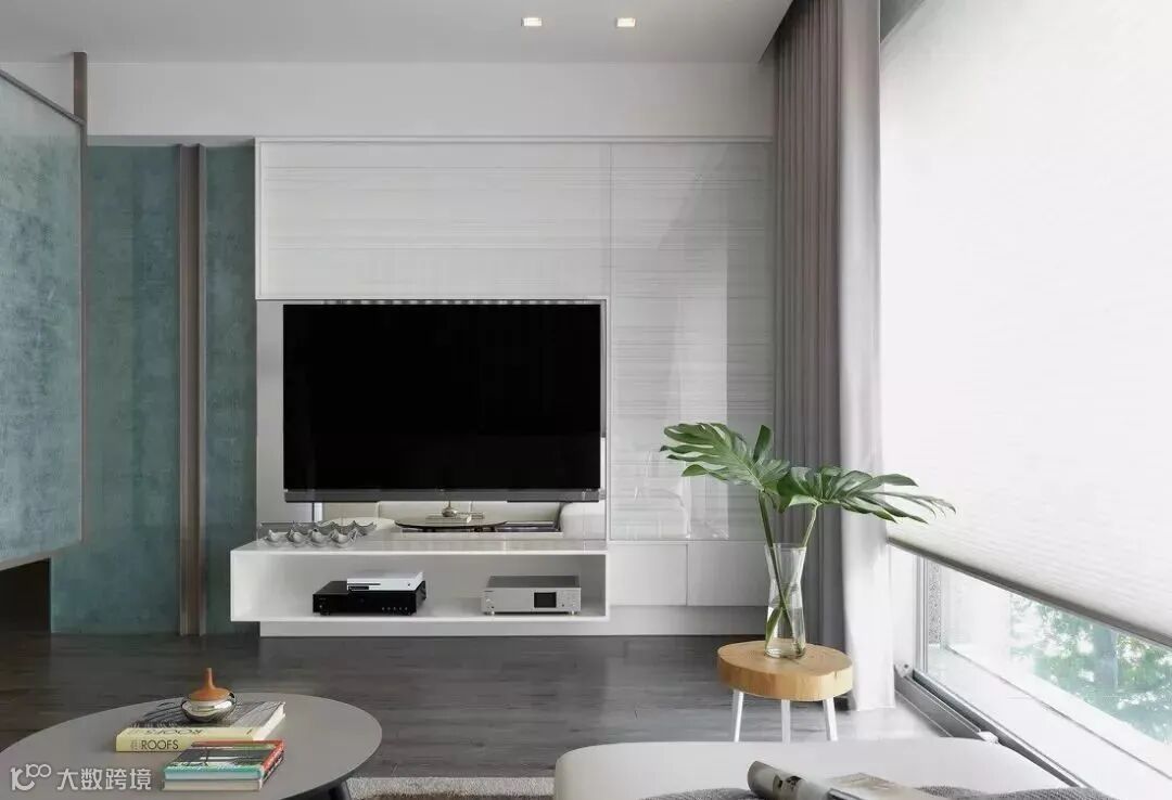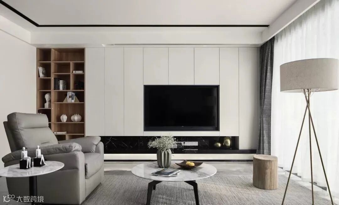 然而,随着极简主义思潮的风靡,以及电视自身存在感的大大削弱,人们的家装观念也受到了一定影响,开始崇尚「去繁从简」,不做繁复的修饰与设计,让电视背景墙变得实用、美观起来。