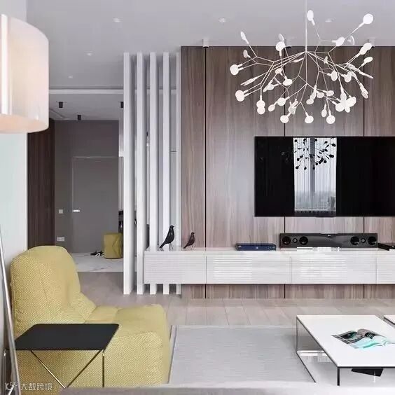 不过,从现在的受欢迎程度来看,原木材质的隔板较多被大家青睐,它的纹理自然、颜色清爽,结合一些简单的吊柜提升收纳机能,不会显得太花哨,反而会为客厅营造不一样的视觉焦点。