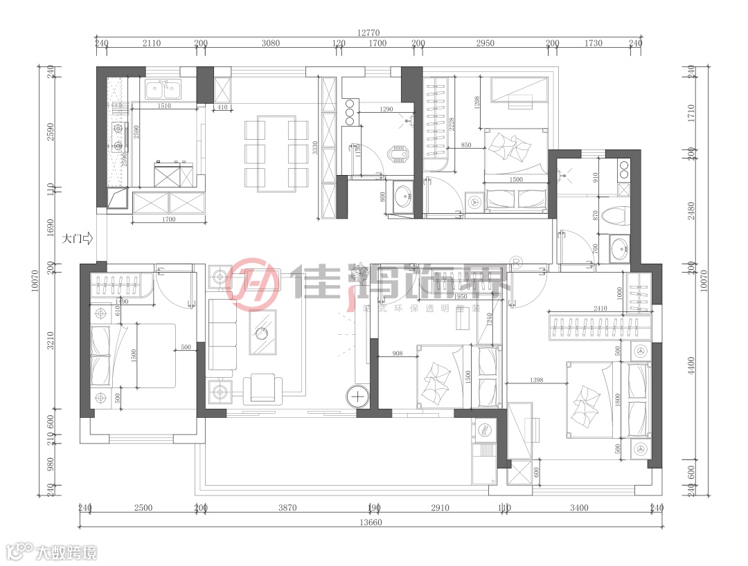 3. 拆除原本的阳台门,将大阳台封窗,改善客餐厅采光问题。