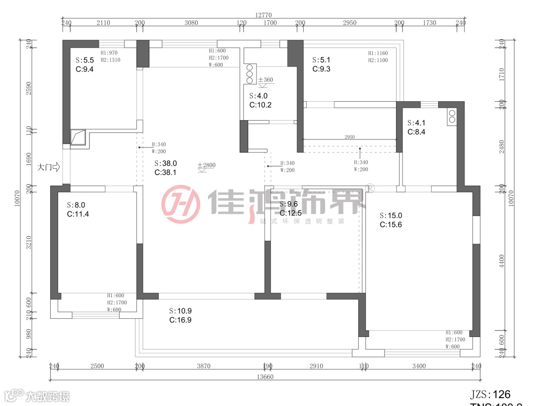 户型面积:四房两卫 126㎡