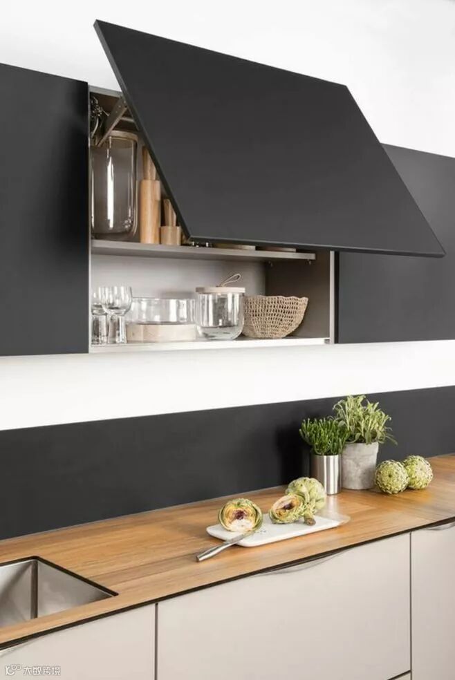 上面说到,可以通过吊柜留空来为电器找到一个容身之所,同样的,这部分功能也可以搬到地柜上实现。