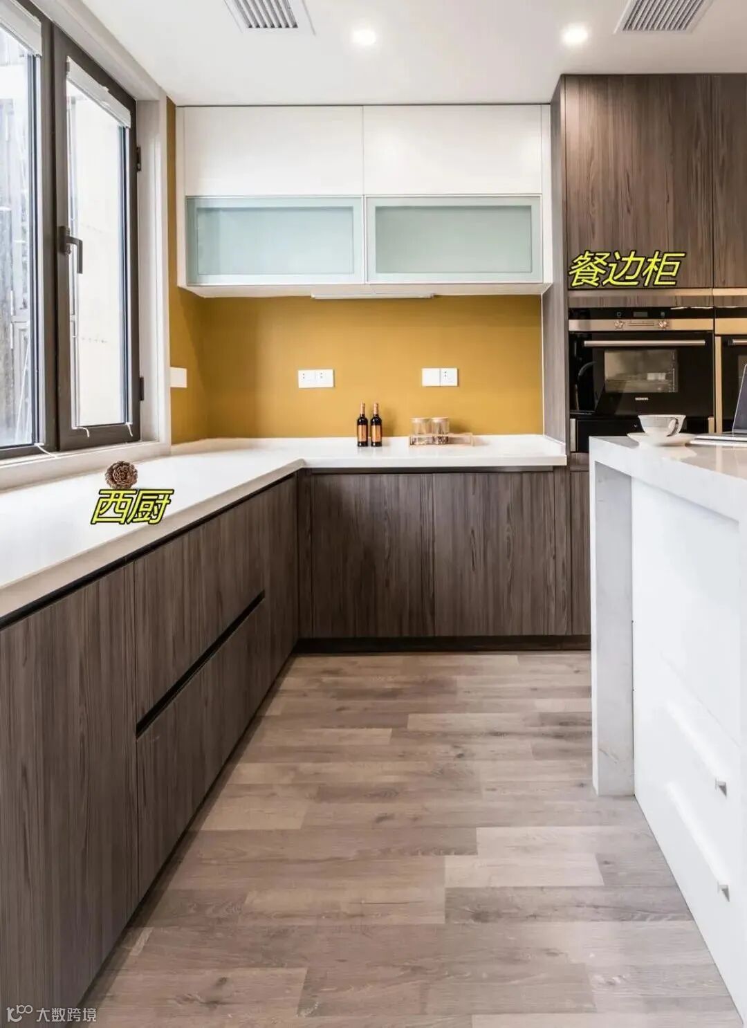虽然这两种柜子都是在餐厅,但是餐边柜主要是用来收纳一些餐具以及分担厨房的杂物。西厨柜不仅需要嵌入各种电器,比如烤箱,微波炉等,不仅如此,最关键的是还需要有水槽,平时洗手和清洗水果也不需要去特地去厨房了。