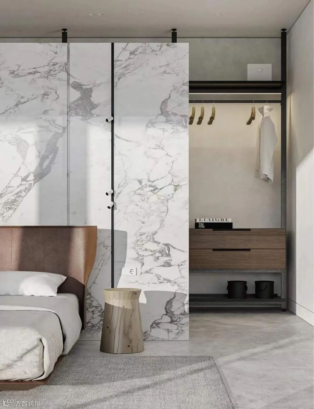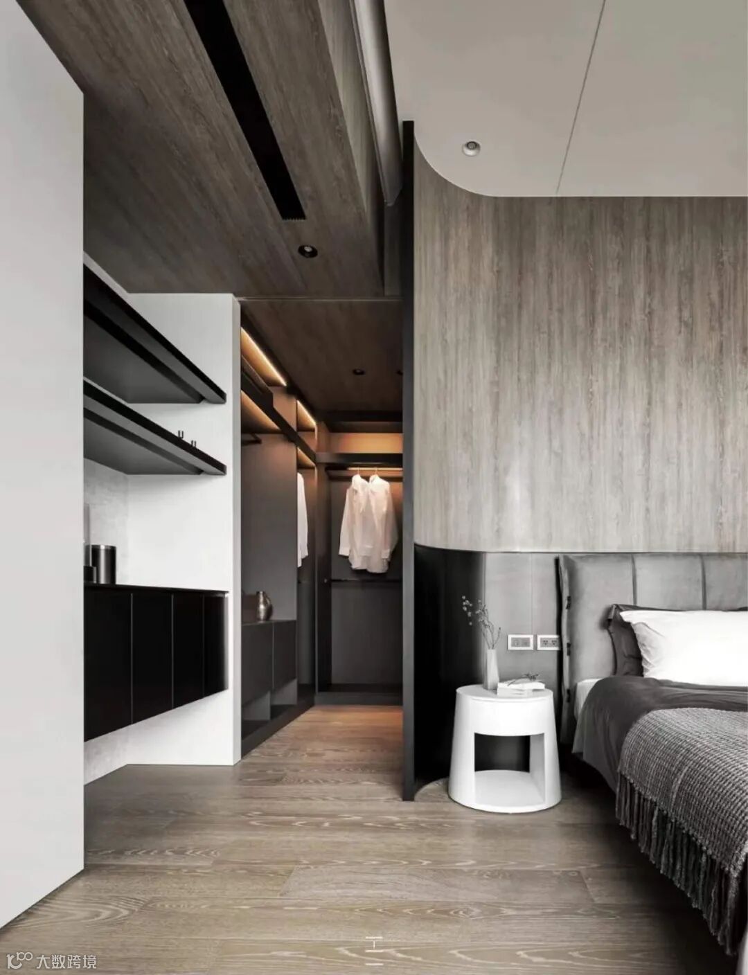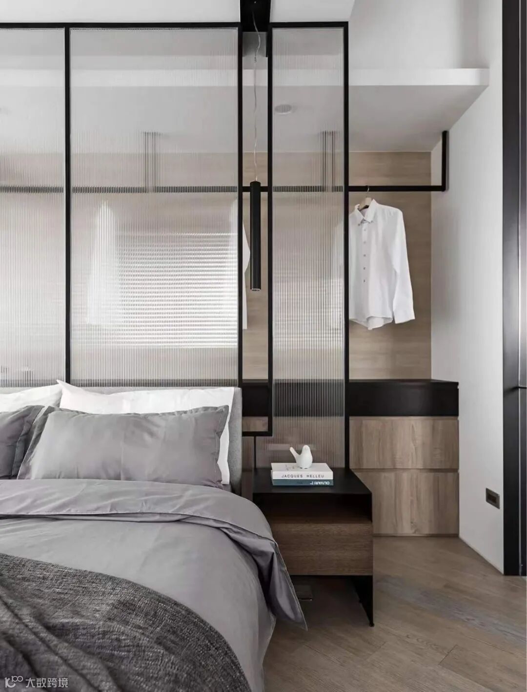 可以选择一些很有质感的木板,放在床头后面代替墙壁隔出衣帽间、浴室等功能区,木板的简约高级,是很多其他材料无法比拟的。
