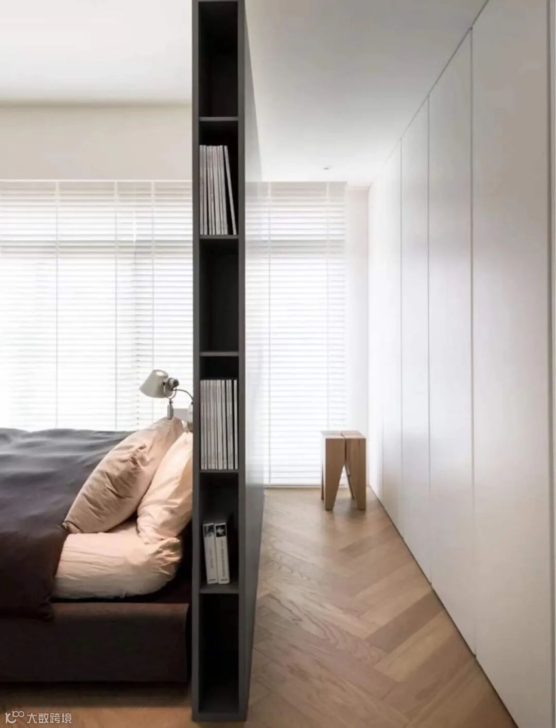 每个女生都会梦想自己的房子拥有一间衣帽间,收纳自己喜欢的衣物和包包,但房价持续走高,想要单独做个衣帽间是很奢侈的一件事。可以利用床头与墙面之间的空间做个迷你衣帽间。