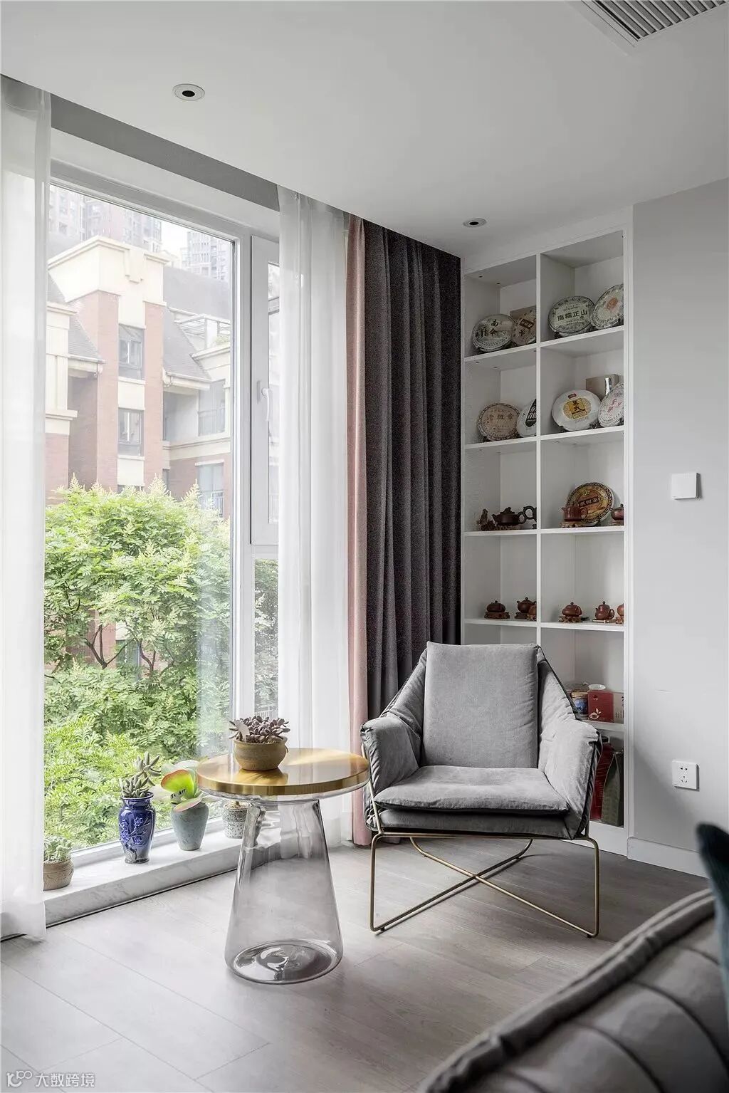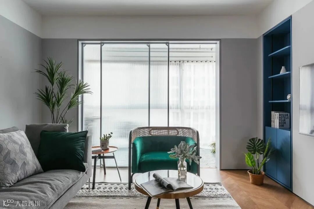如果客厅面积比较小,阳台就是它的备用区域,摆放单人沙发,让阳台完全成为客厅一部分。