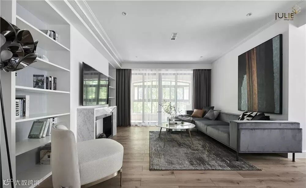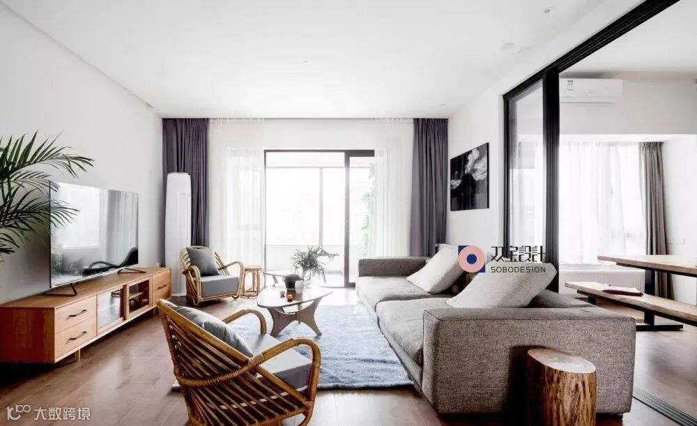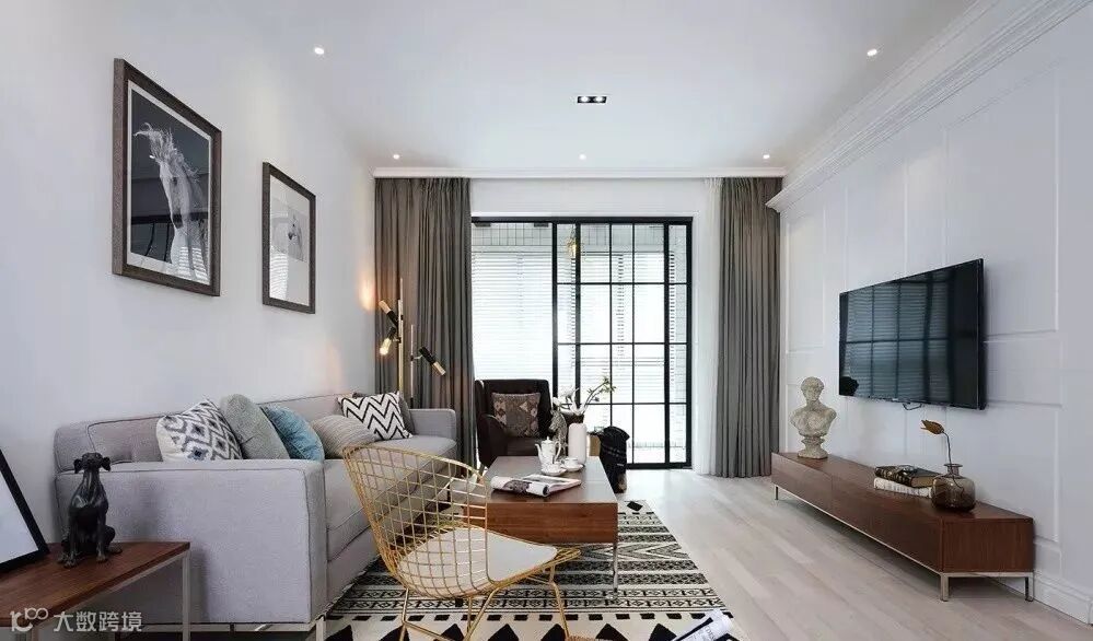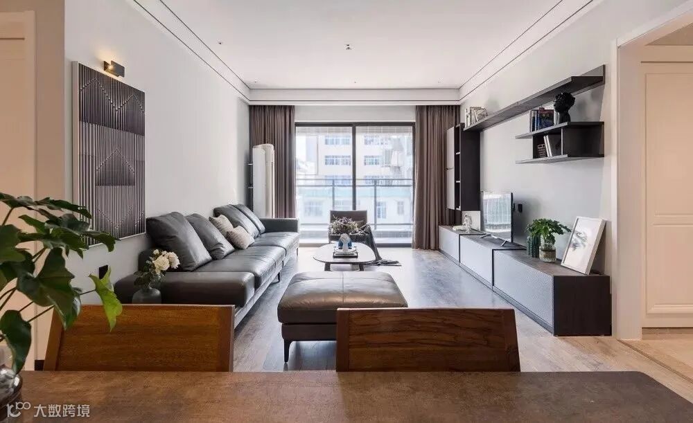 客厅和阳台直接装门的话比较多的选择推拉门,尤其最近几年颜值比较高的黑框推拉门,各种风格都能搭配(担心推拉门有卫生死角。可以直接在地面上开槽,将轨道嵌到地面。)