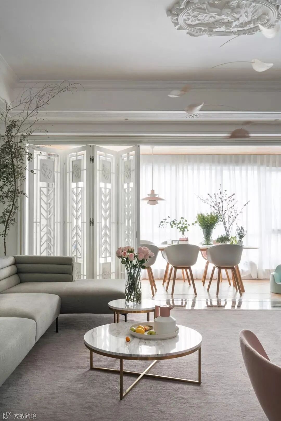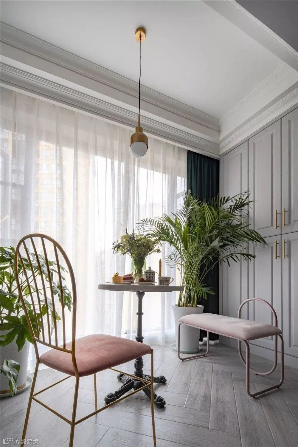 折叠门也是不错的选择,和推拉门相比,折叠门会让阳台开起来更加开放,不用的时候收到一边,拉上又能完美隔断空间。