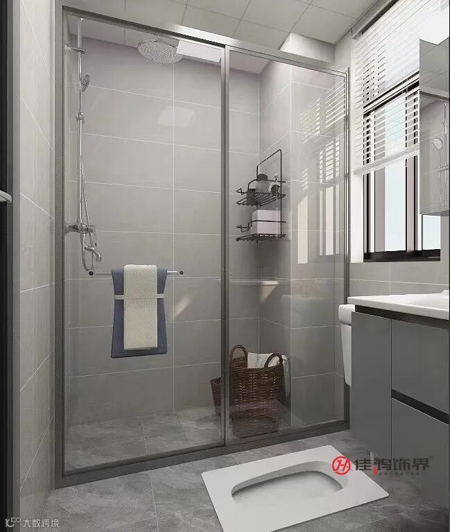 搭配深灰色纹理地砖,