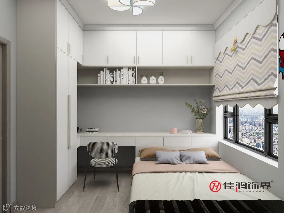 学习区与定制化衣柜采用相同的材质,