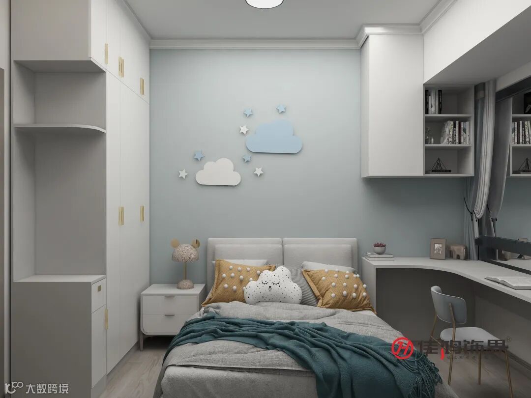 男孩房以天空蓝和白色为空间主调,
