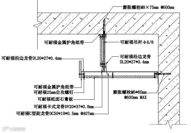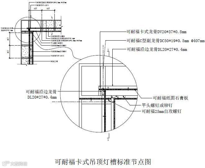 1、可耐福卡式吊顶系统 ——卡式吊顶灯槽做法
