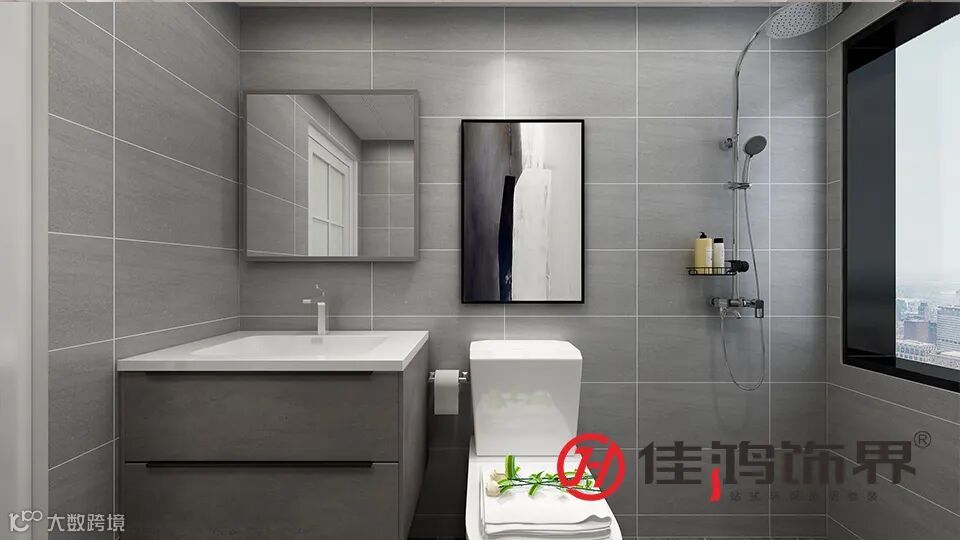 ▲卫生间是经典的灰色,白色的灯光柔和了整个空间,镜柜和浴室柜选择的都是挂壁式,避免了卫生死角,打扫起卫生来也相对轻松。