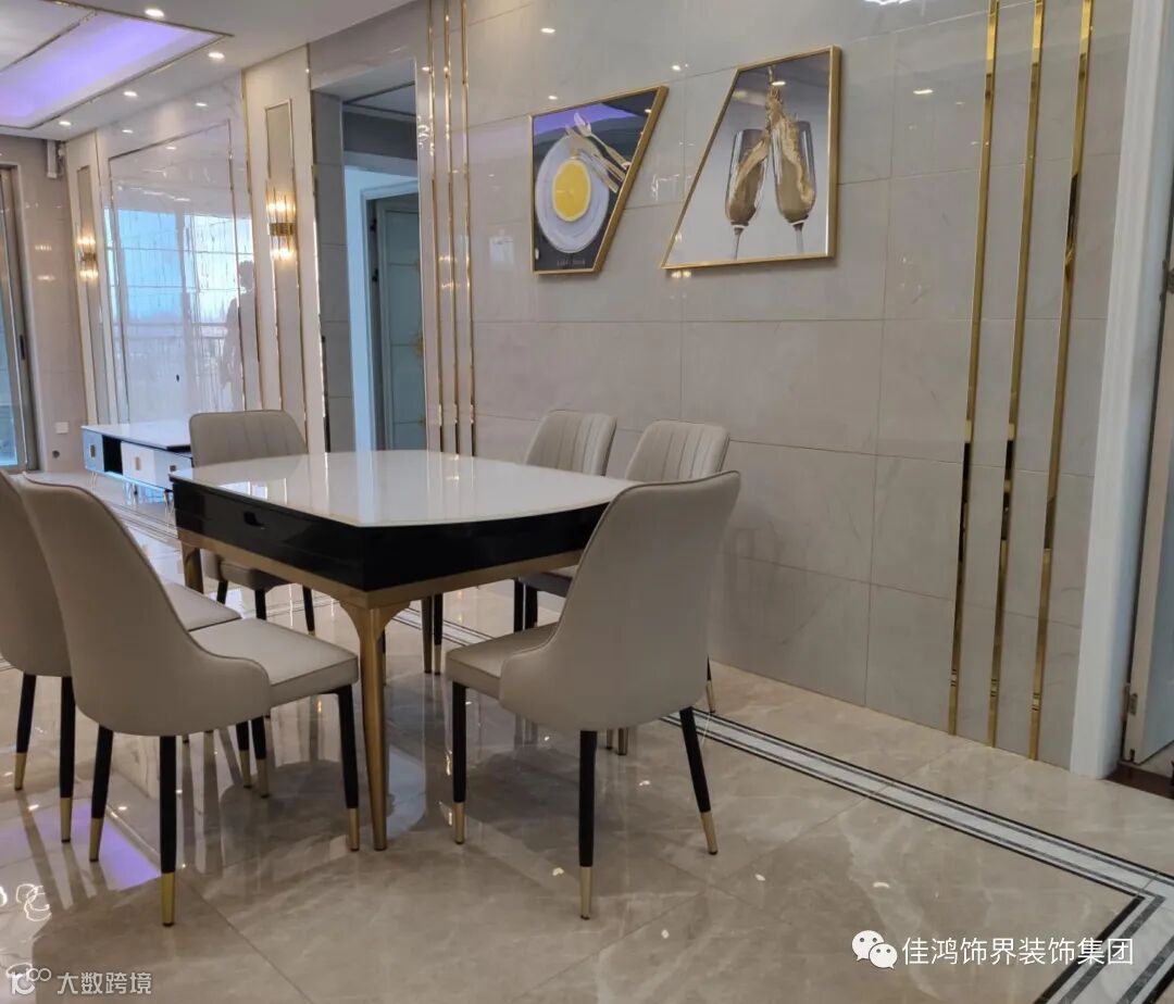在简约的空间里,设计师通过材质、色彩的运用和软装的搭配将轻奢风打造得淋漓尽致。没有过多的造型,运用金色元素进行搭配,色彩上60%采取白色为底色,30%为辅助色彩,加上最后的10%作为点缀颜色,独一无二,同时巧妙运用玻璃、瓷砖、金属等材料来拓宽视觉感及表现光影的和谐,创造出直撩心底的优雅魔力,每套房子都有属于它的设计,设计源于生活,而时尚、轻奢成为了这个空间的一大亮点。