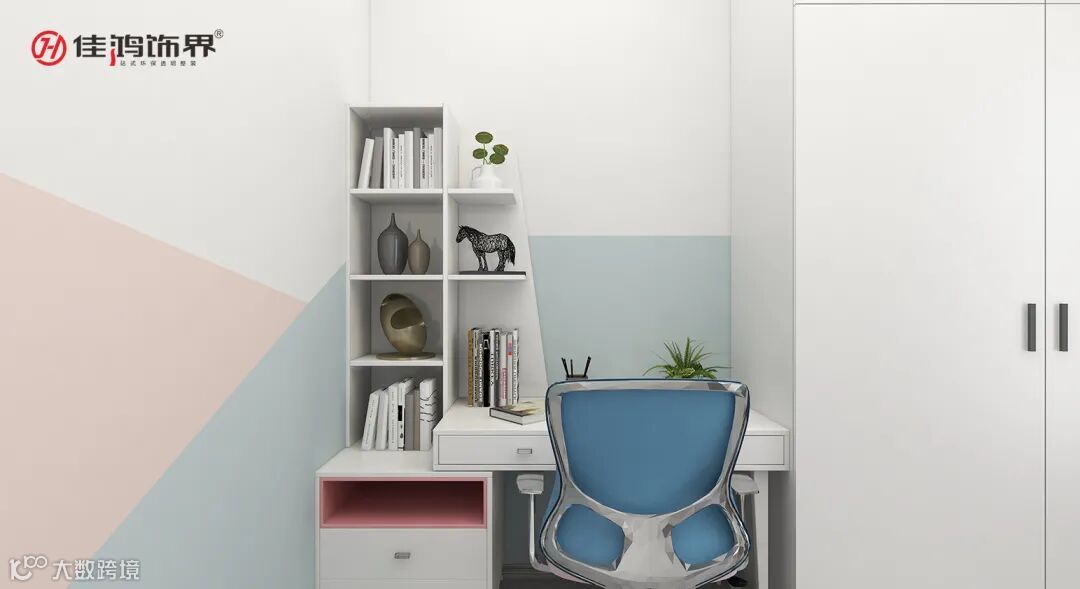 When you are busy, you need a quiet space, or reading, sweeping the world, or having fun to bring spiritual joy, or simply rest to relax your body and mind. The color splicing board and the integration of pink in the multifunctional room make the space both peaceful and peaceful, but not monotonous and dull. The eclectic writing desk and bookshelf design can also make the process full of fun and vitality.