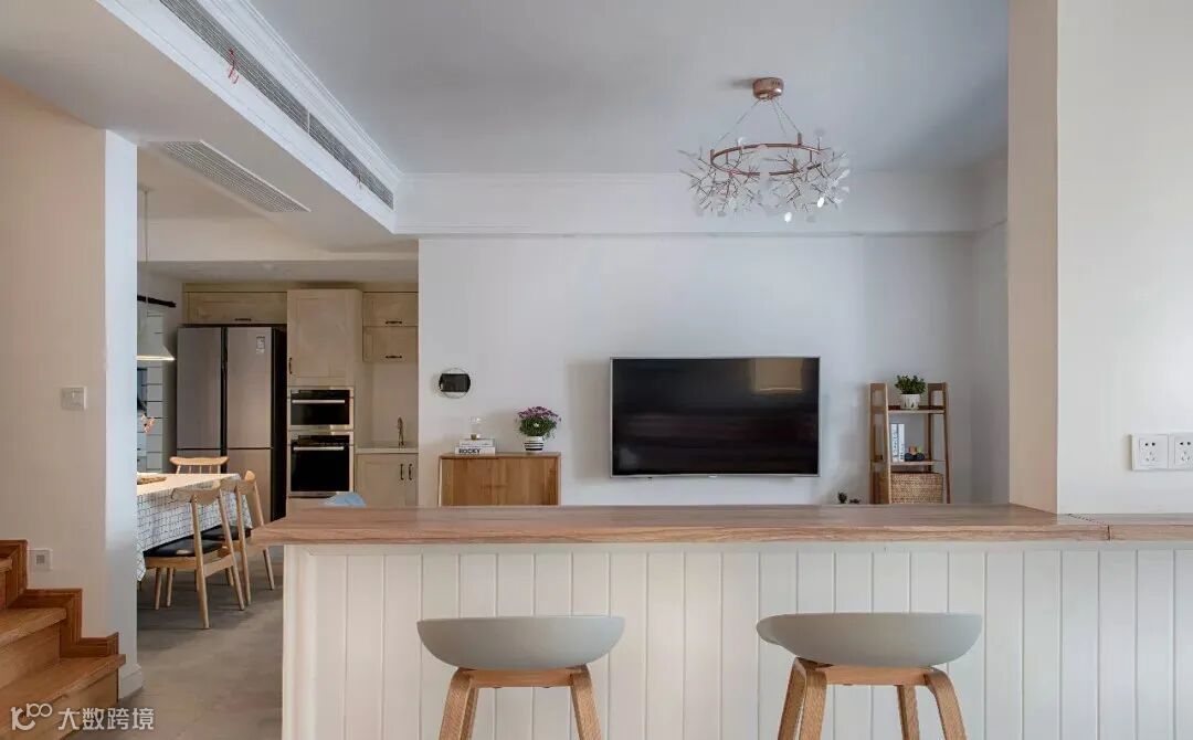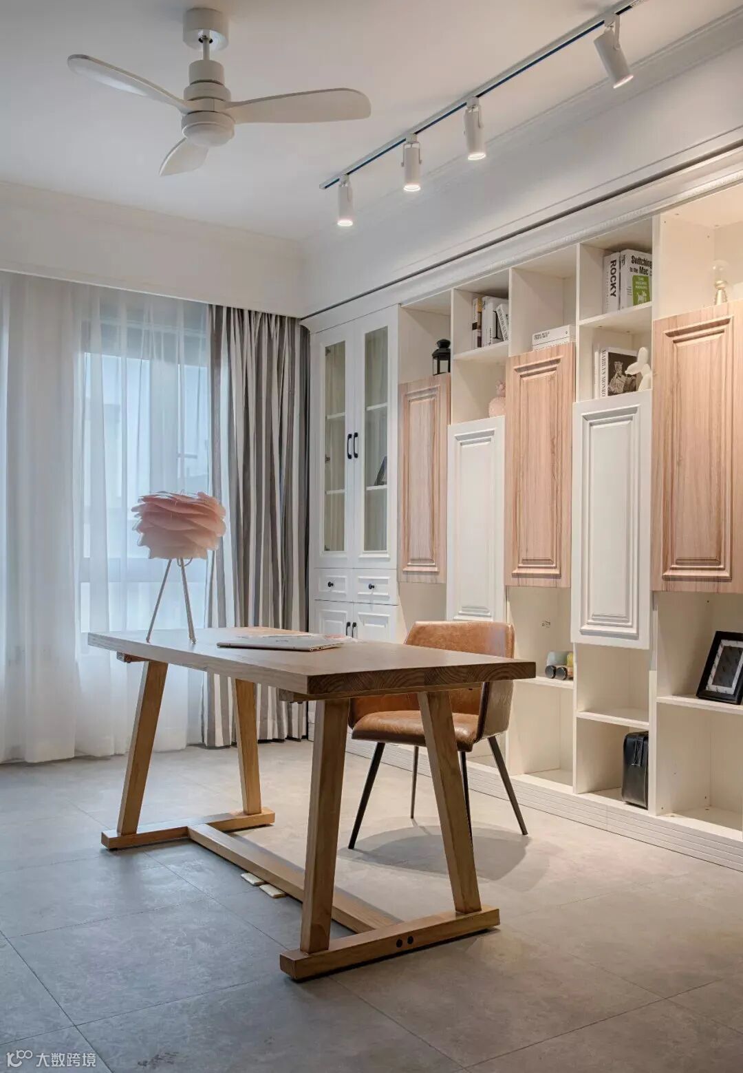▲ 根据户型及业主需求,打通客厅与书房、餐厅与厨房之间的非承重墙,开放式的设计,开阔了视野,而且无论是在做饭还是工作看电视,都可以看见孩子的一举一动,确保孩子的安全。
