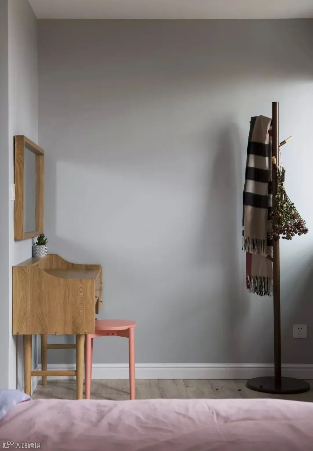▲ 因为有衣帽间所以在卧室里就没有打造衣柜了,配个梳妆台和落地衣帽架,简约却功能齐全,满足了女主人的精致生活体验。