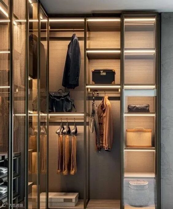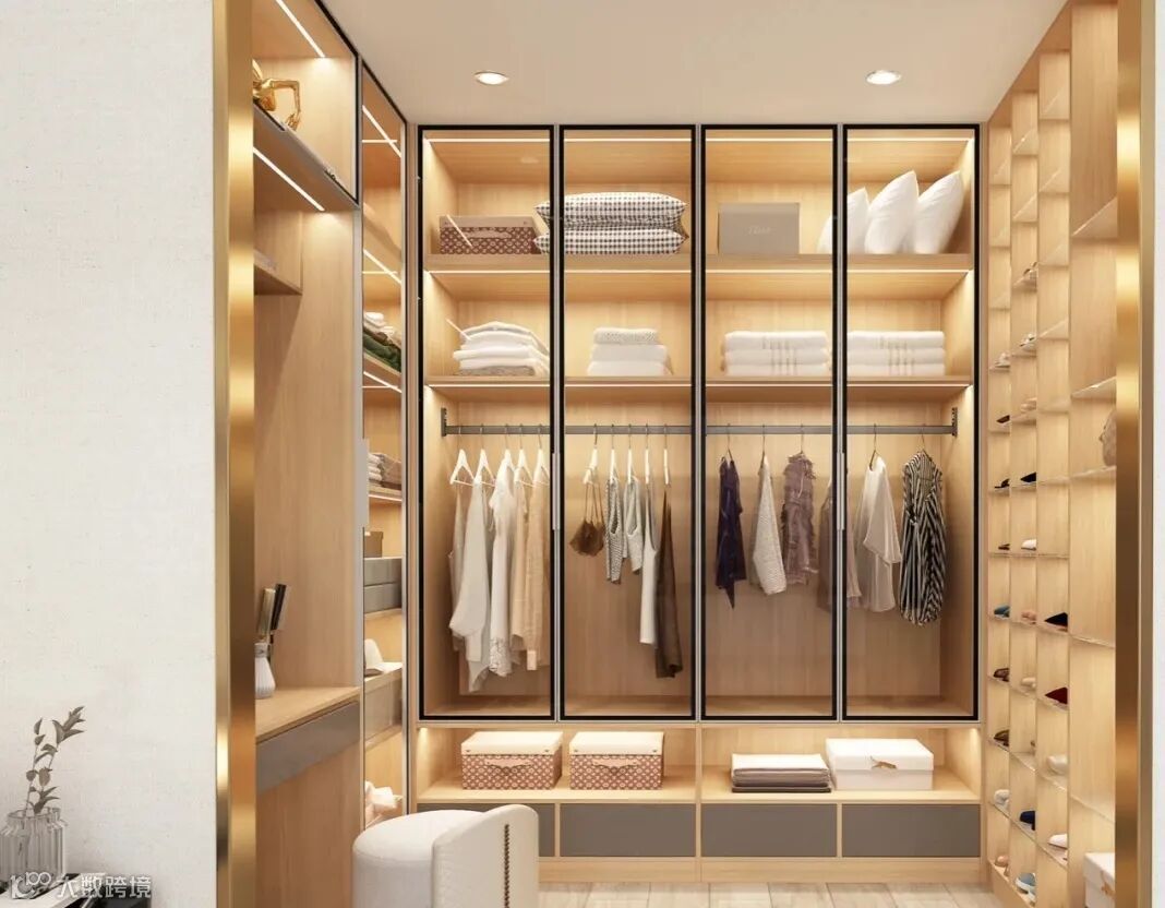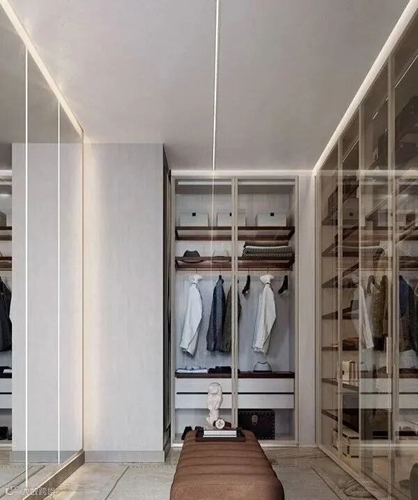 3、开放式衣帽间可以选用一些防尘设计,这样节省了清洁时间。