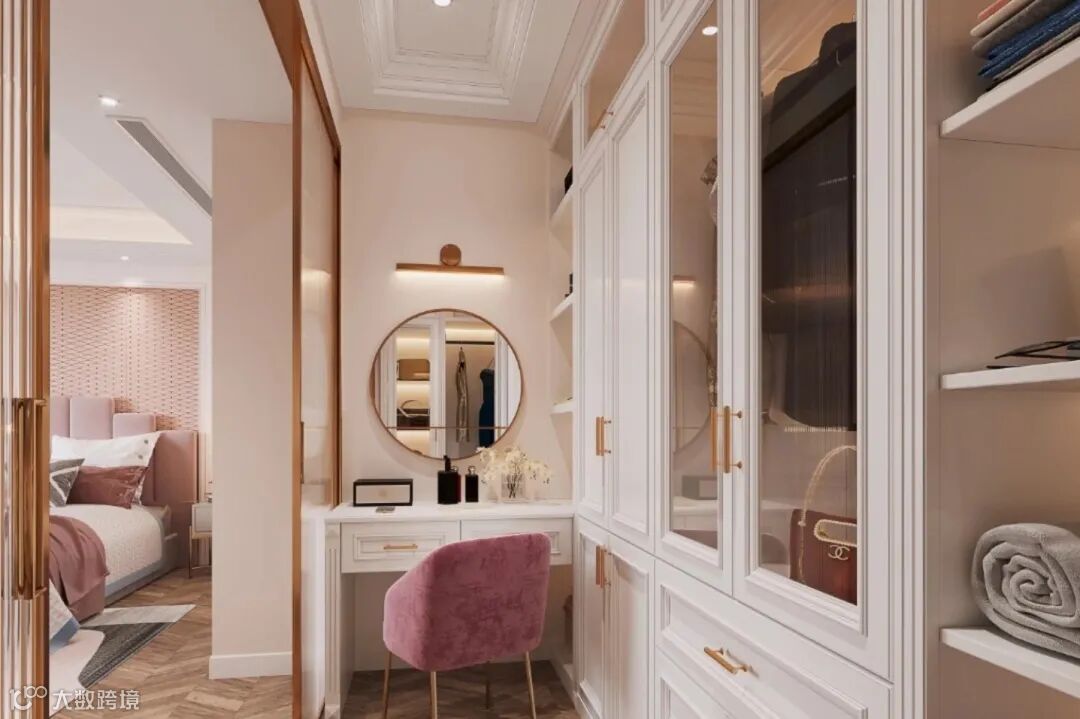 如果家里有两个卫生间,入住人口在3口或以下,都可以选择将主卫隔出一个区域改成衣帽间。