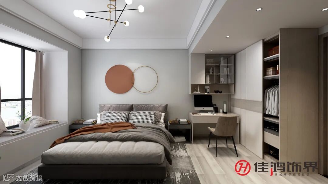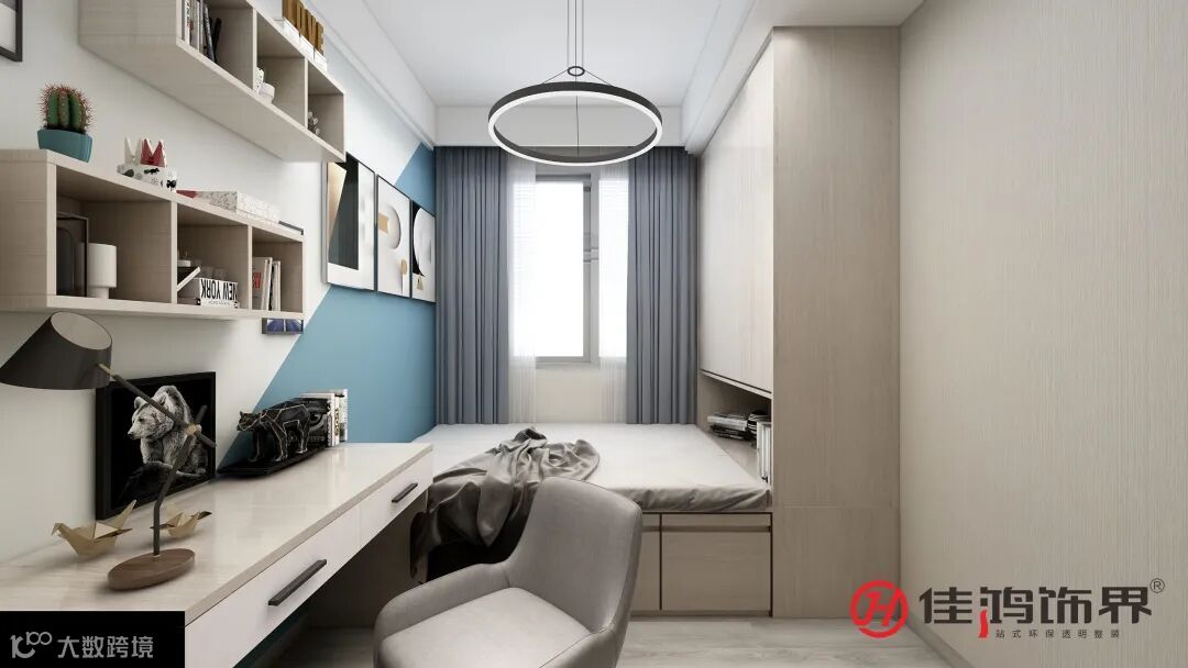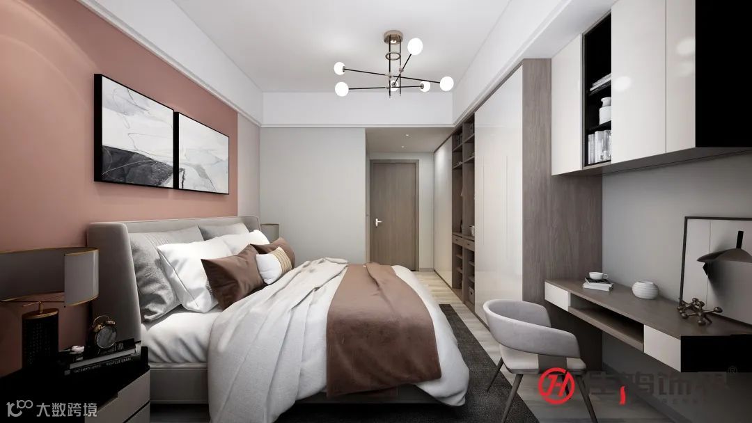 The bedside background of the bedroom is earthy brown, which appears implicit and restrained in the whole space; custom-made log sliding door wardrobes, desks, and fabric single chairs make daily life comfortable and simple; at the same time, it is ingeniously mixed and matched with metal bedside lamps. It gives people an elegant temperament without losing a warm and comfortable feeling.