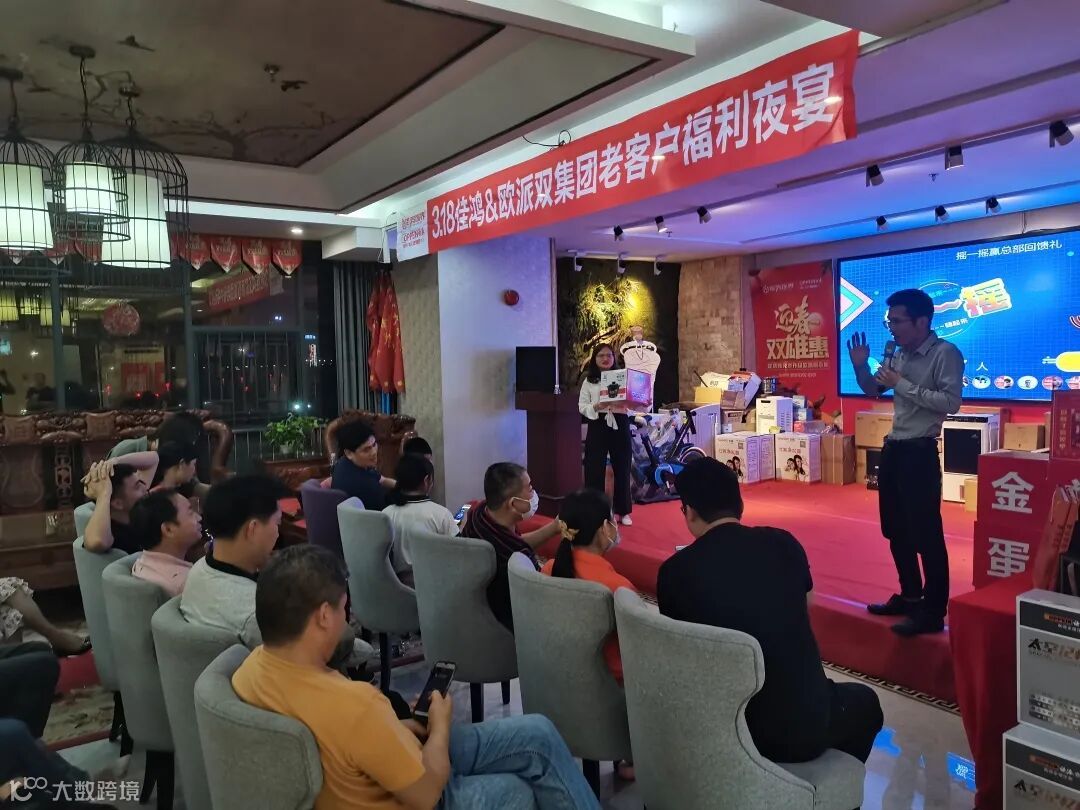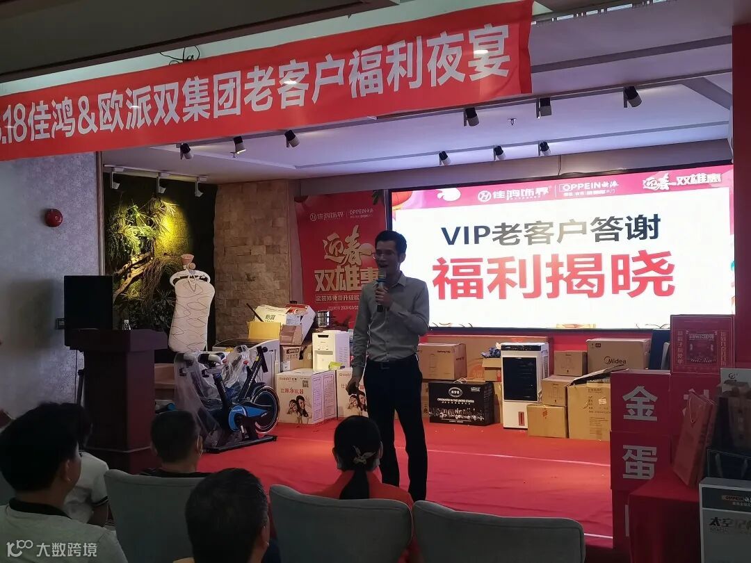 ●在夜宴的现场,由欧派总部团购事业部华南区陈总给老朋友们“送出”福利, 现场欢笑声、掌声不断。