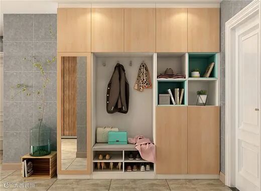 鞋柜还是建议做成那种顶天立地的,这样放鞋的空间也会大很多,底下也好做出一排空地收纳常穿的鞋子。中间则可以留空做成一个储物架,方便实用!