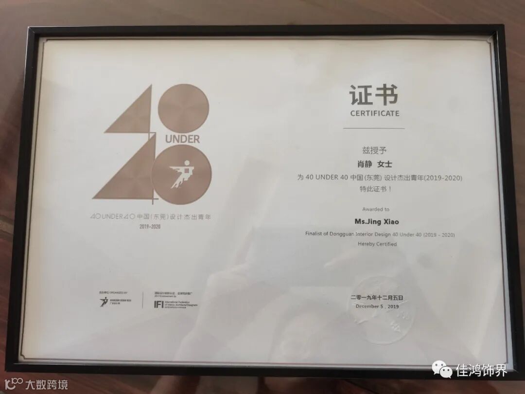 2020年10月,佳鸿饰界设计总监肖静荣获“40 UNDEER 40中国(东莞)设计杰出青年”荣誉称号。