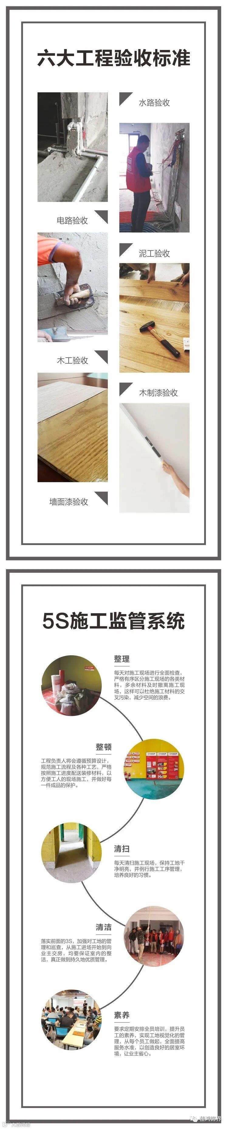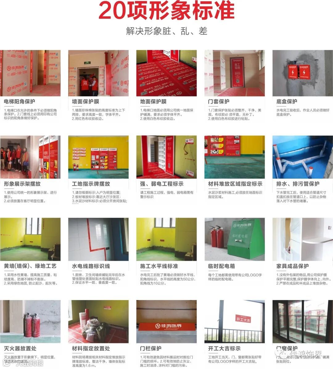 追求钻石般永恒品质, 坚持钻石打磨匠人心态, 上百名精湛工匠, 上千个工地验证,历经十余年,磨砺出佳鸿独有的5大红钻工程体系:“20项独家红钻工艺、20项形象标准、6大工程验收标准、5S施工监管体系、10项全包,15不限”。力图达到“服务合格四率、质量过硬四统一、进度严明四及时、形象优良四优良、保障有力四确保”的军事管控核心,使工程的安全、质量、形象、满意度达标,为客户提供更好的服务。