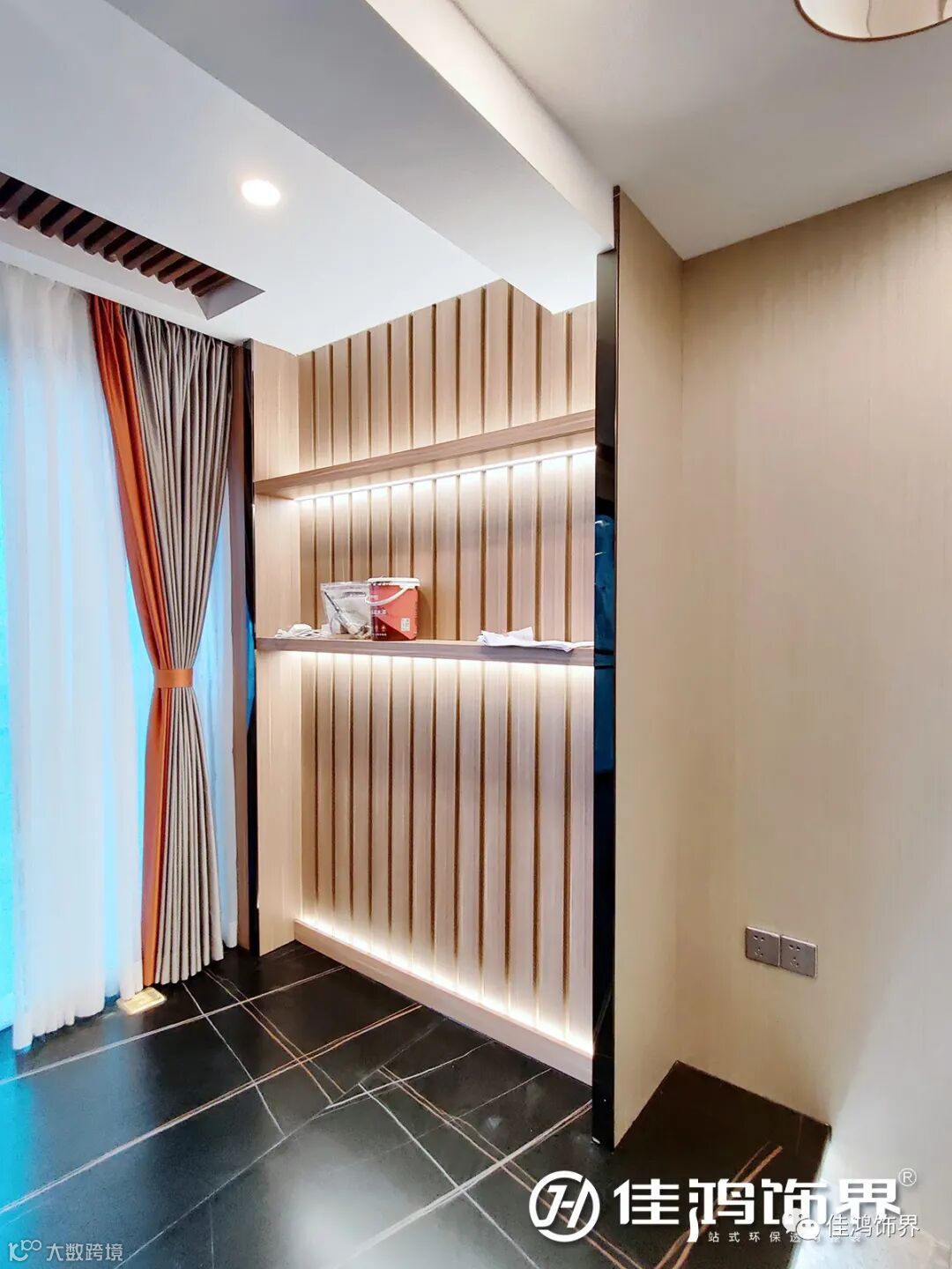 ▲ 茶台后面和另一边都做了柜子,柜子的木色给整个空间增添了温馨感,也让整个空间显得没那么沉闷,到时可以放些装饰品或者绿植,就完美的打造成了另一个小天地。
