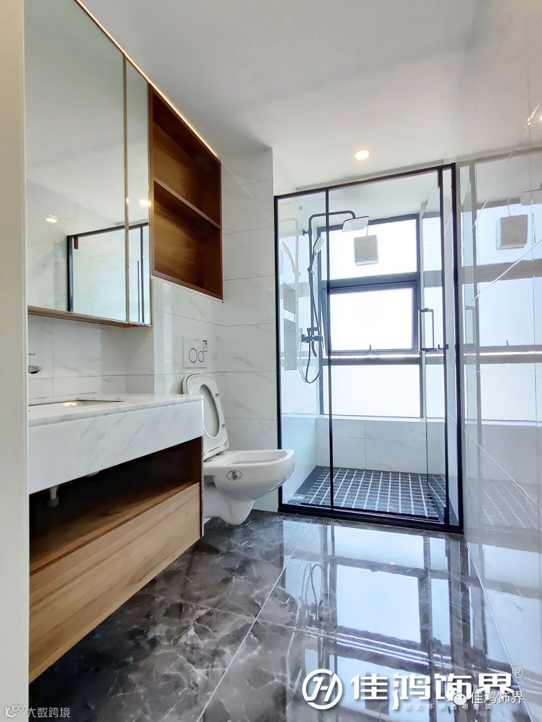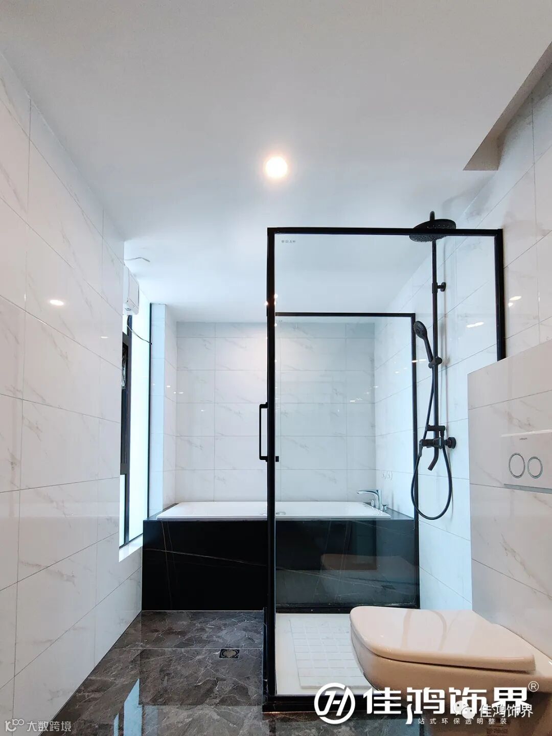 ▲ 卫生间采取了黑+白的极简配色,白色瓷砖个性不单调,黑色五金件则让卫浴空间显得高级有质感。