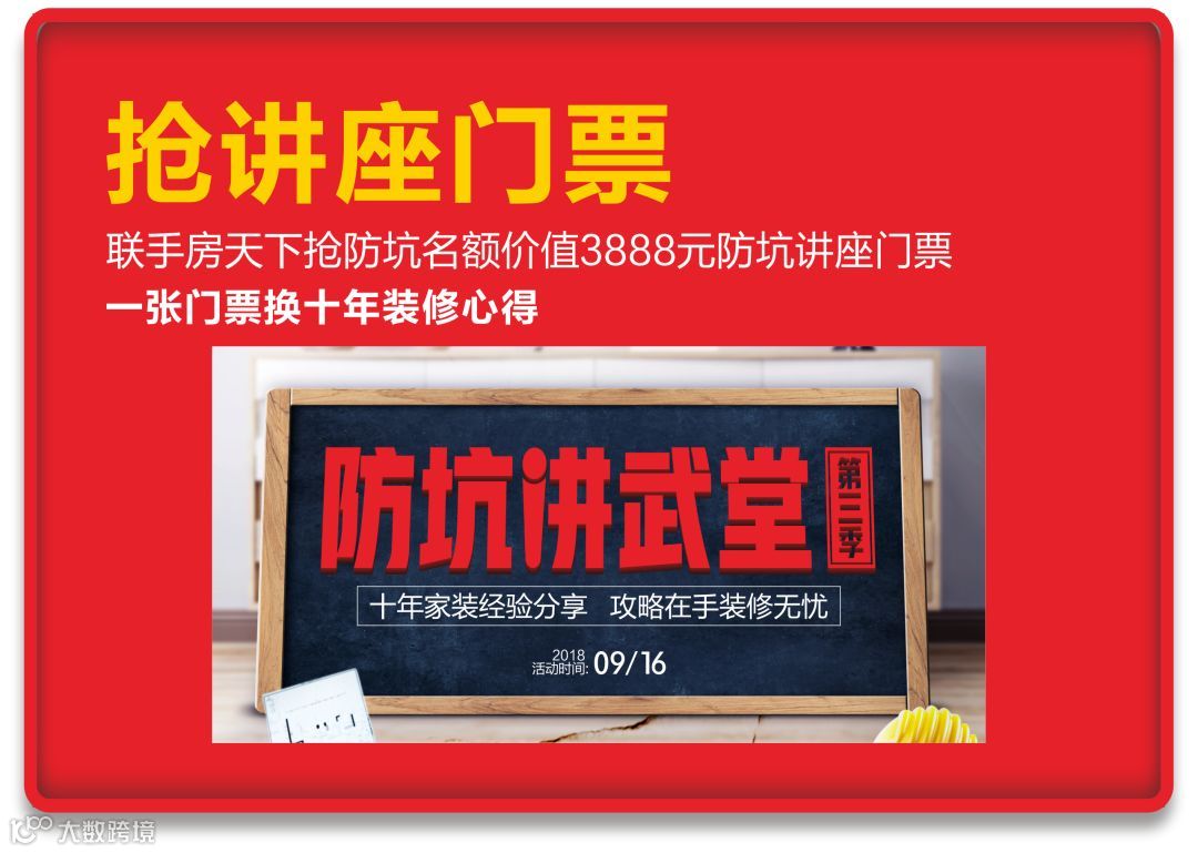 本月佳鸿饰界携手中国农业银行、房天下(搜房网)三方联合举办,【第三届防坑讲武堂】。时间从9月5持续至9月16日!这一次佳鸿饰界进行了上百家家庭问卷调查并在十三年的家装经验上再总结,16日现场同台全面分享装修知识,教会大家认识更真实的家装。